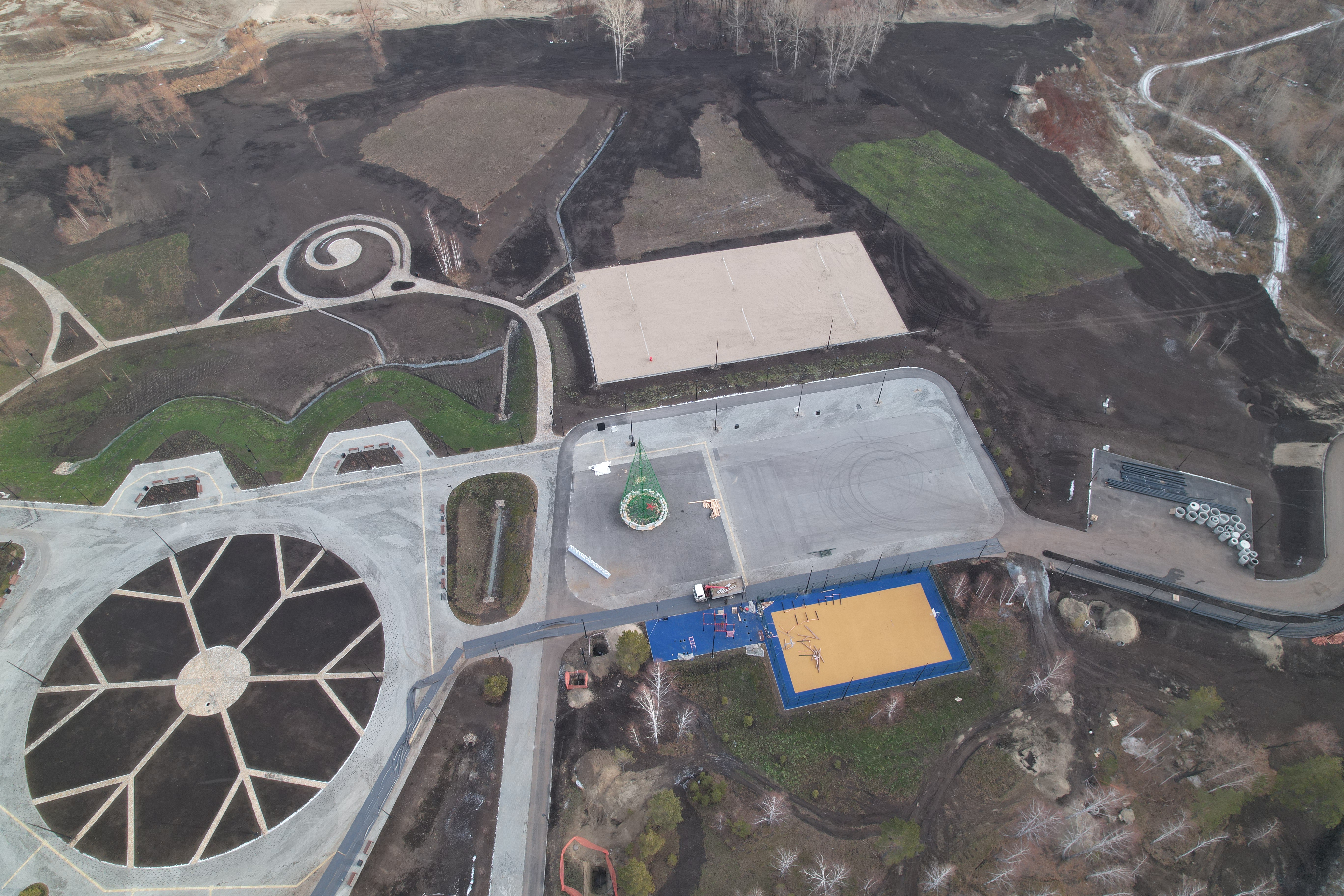 В парке возле нового хоккейного стадиона уже установили большую ёлку из светодиодов и павильон в виде сверкающей полусферы. В центре площади со снежинкой скоро появится инсталляция с эффектом северного сияния. Деревья перед зимой подстригли арбористы.
