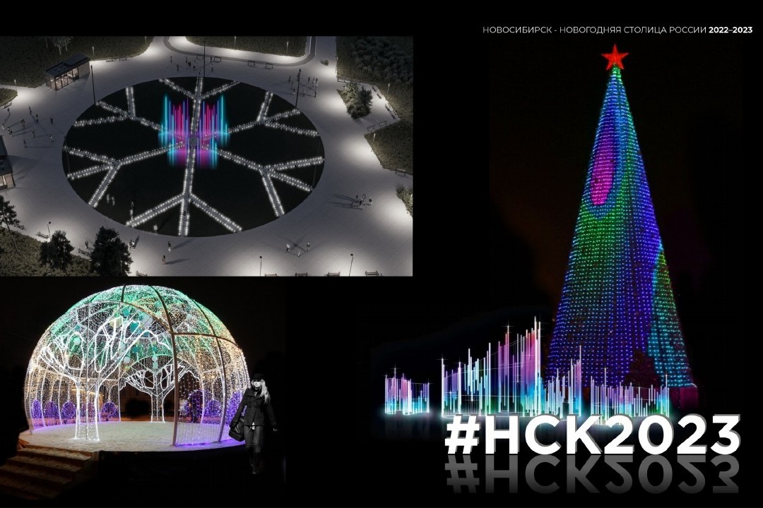 Цифровую ёлку установили в парке у новой ледовой арены в Новосибирске
