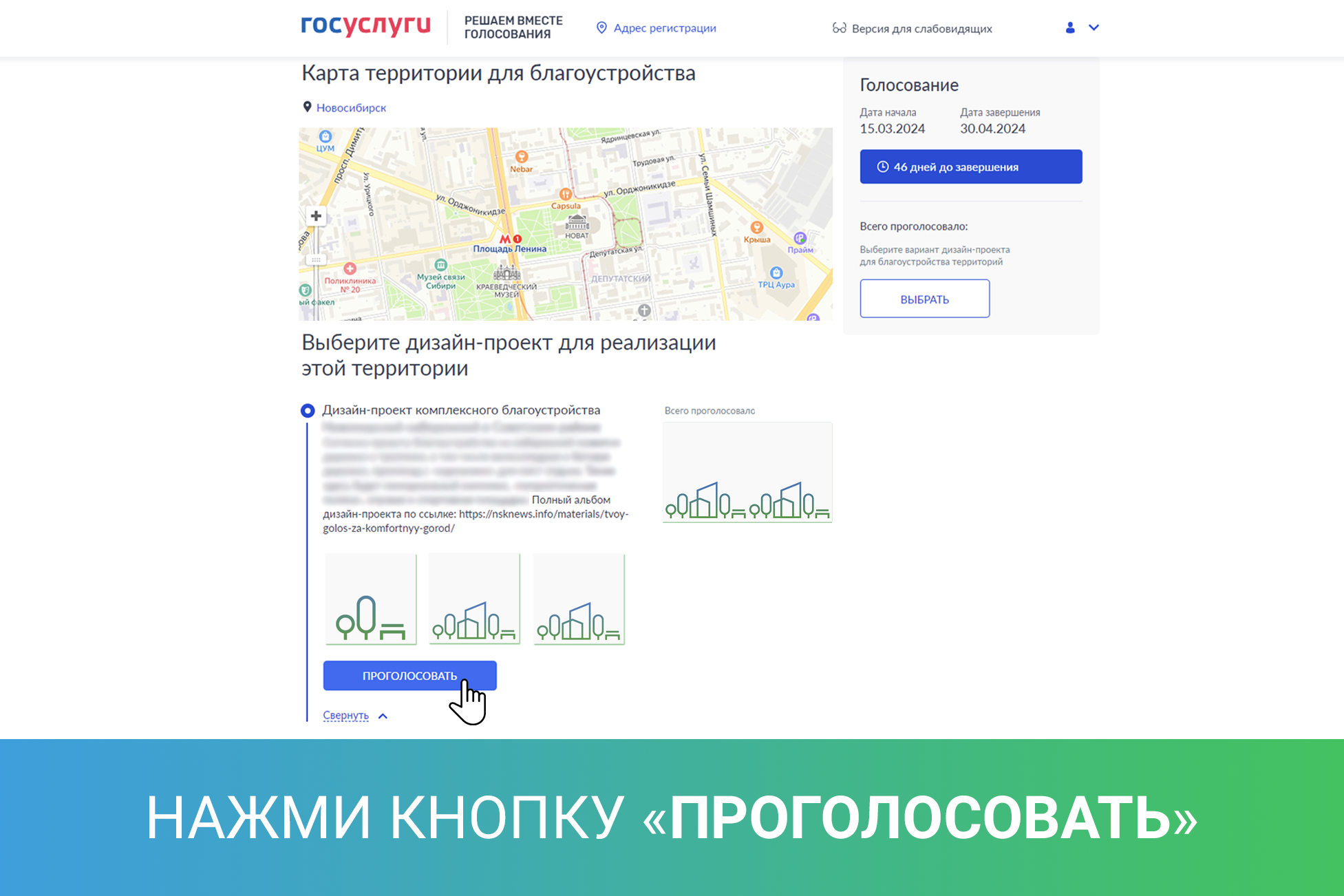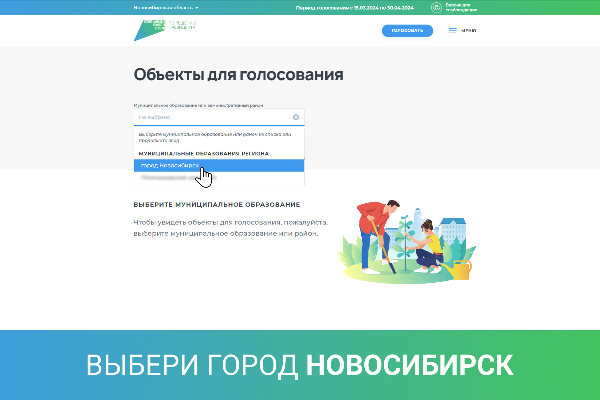 Сделать свой выбор можно будет с 15 марта до 30 апреля на сайте 54.gorodsreda.ru. Площадку, которую поддержит большинство горожан, благоустроят в 2025 году. Голосование рассчитано на новосибирцев от 14 лет, зарегистрированных на «Госуслугах».