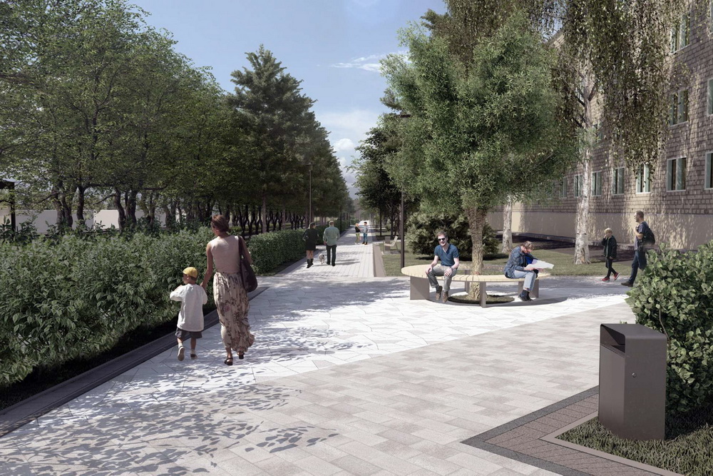 Старые клёны вырубят и заменят лиственницами. В живую изгородь досадят вязы и кусты пузыреплодника. Вывески на фасадах прилегающих домов оформят в минималистичном стиле.