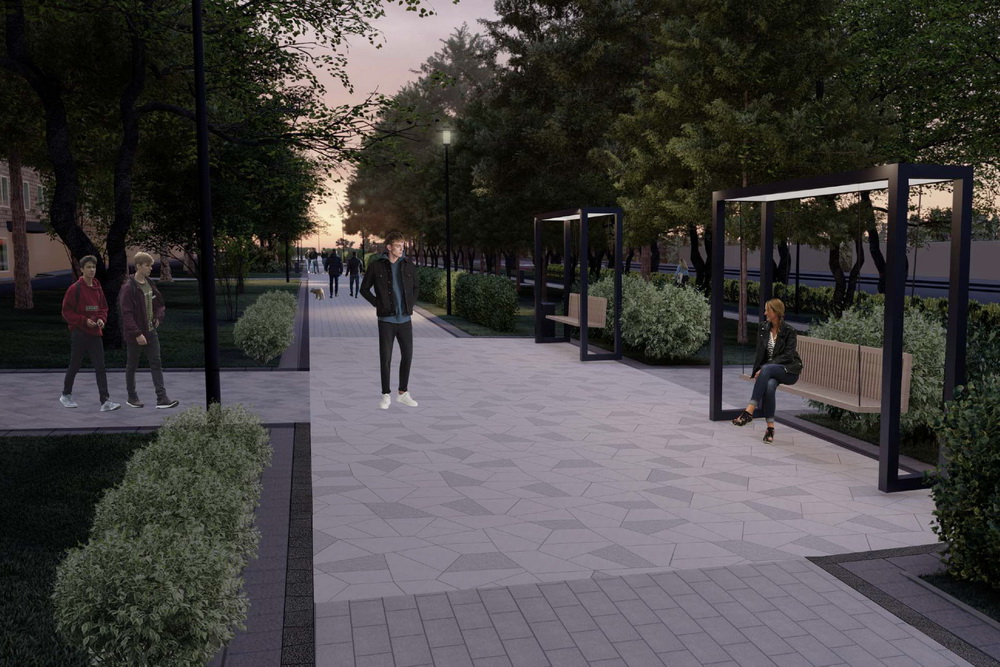 Согласно дизайн-проекту, нижнюю аллею у дороги оставят проходной, убрав парковки. Внутри сквера оборудуют дорожку со скамейками, креслами и урнами. Зоной притяжения должна стать центральная площадка, на которой установят качели с подсветкой. На территории появится 24 современных фонаря. Для мощения пешеходной зоны планируют использовать четыре вида плитки.