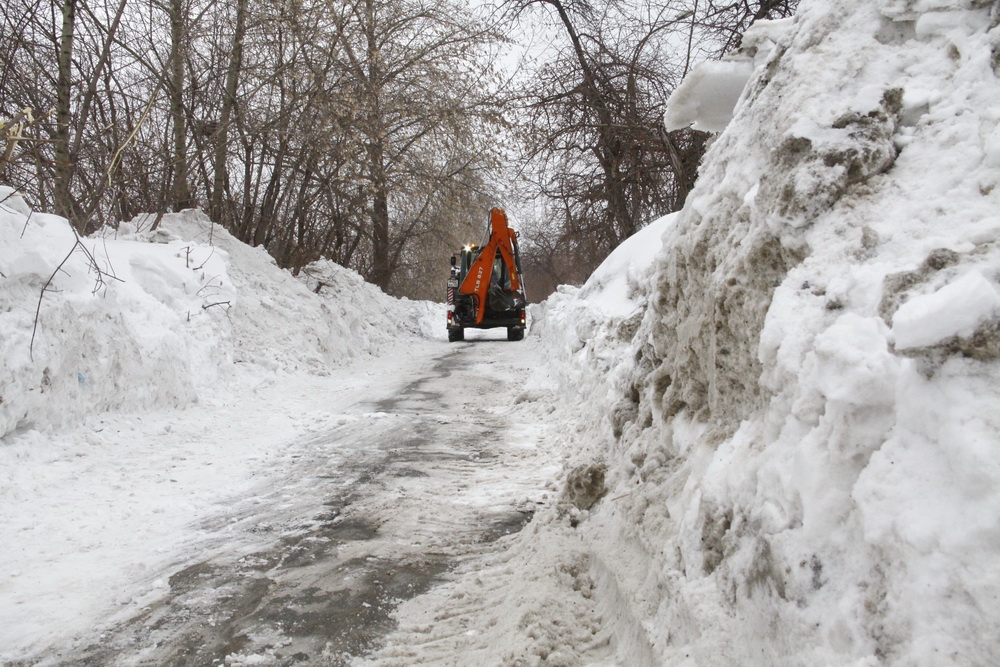 Уборка перед паводком: на Трикотажной вывозят снег и промывают ливнёвки
