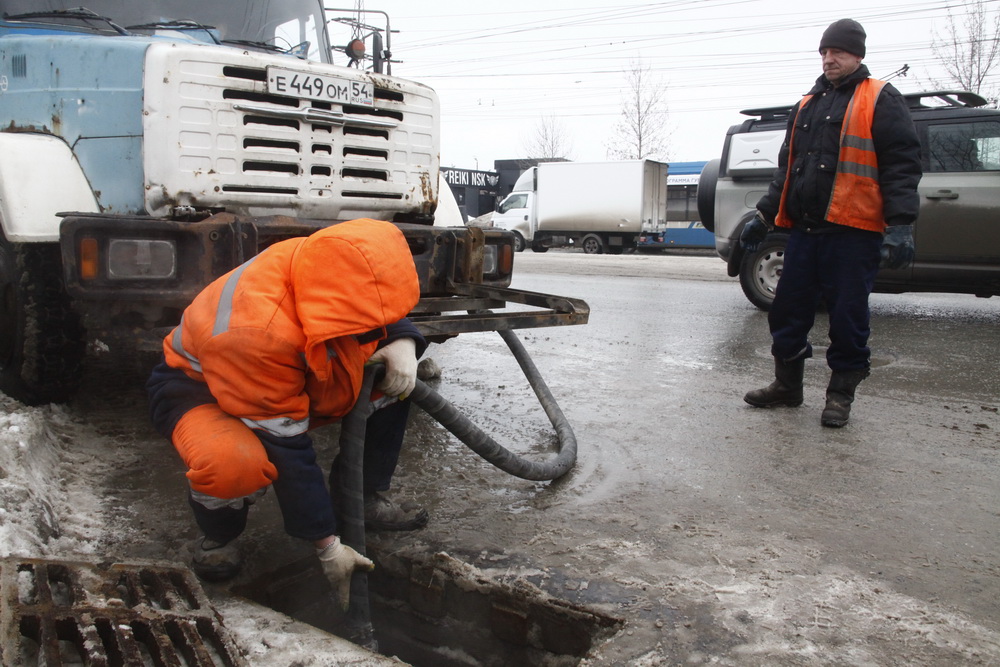 Мобильные бригады дорожников в Дзержинском районе Новосибирска работают круглосуточно: вывозят снег и промывают ливневую канализацию.