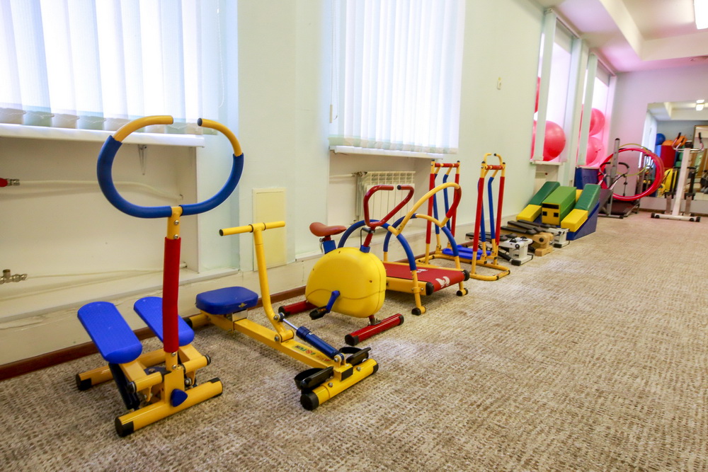 Вместе со Светланой и Тимуром здесь дети с мамами со всей области: два десятка семей. К их услугам — серьёзный реабилитационный комплекс: тренажёры, игры, массаж, лечебный бассейн, углекислотная ванна.