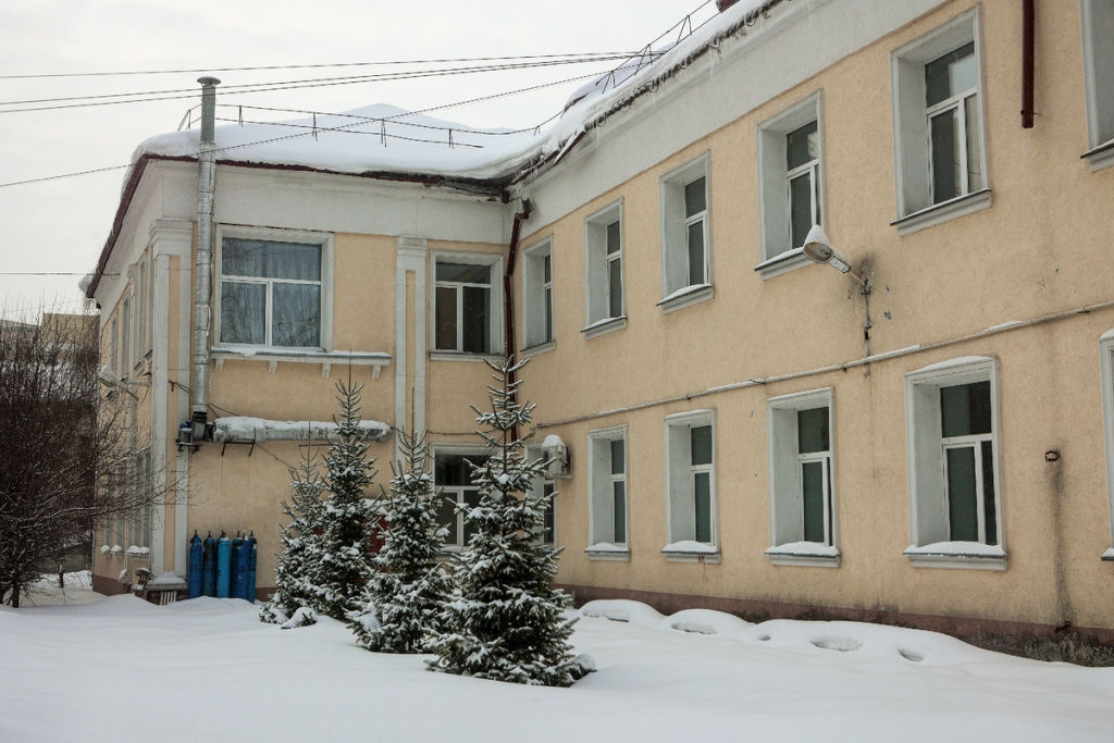 В больничном комплексе на Семьи Шамшиных, 40 сегодня нет ни пациентов, ни медперсонала. Приём на госпитализацию не ведут с 22 января. Редкие работники, попавшиеся нам на пути, занимаются упаковкой и перевозкой оставшихся вещей. В отделениях ещё не отключили отопление и электричество. Всё напоминает о том, что место знаковое. Больше 100 лет здесь базировался стационар, где лечили разную заразу. Первая открытая на этой площадке больница так и называлась — заразная.
