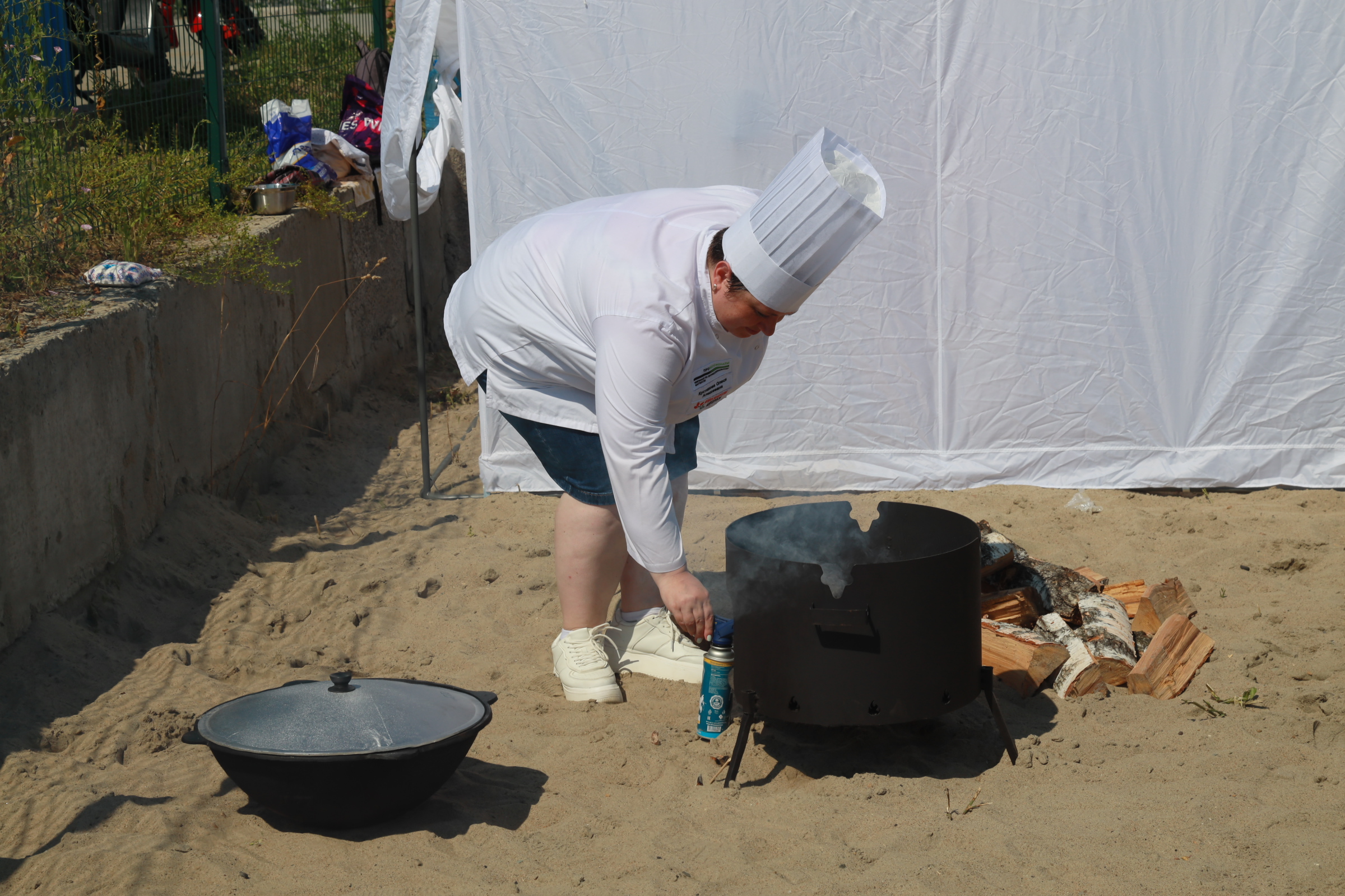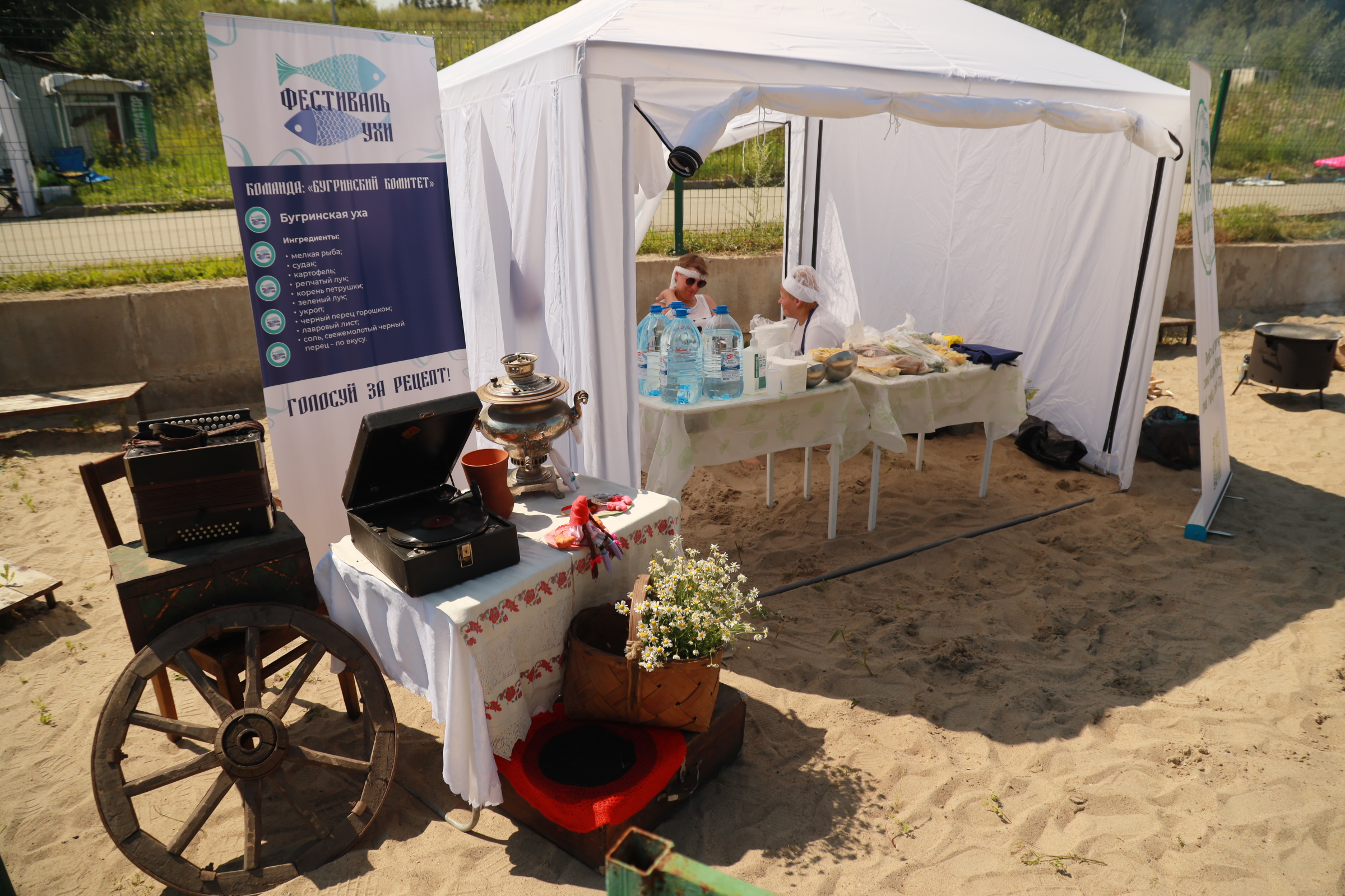 В одной палатке разместились студенты Новосибирского колледжа питания и сервиса, в другой — представители общественной организации «Бугринский комитет». Сначала в шатрах подготовили продукты. Среди них — стандартный суповой набор: филе судака, картошка, лук, морковь, зелень и крупа (пшено и манка). К одинаковым ингредиентам каждая команда добавила свою секретную приправу, в этом и была интрига.