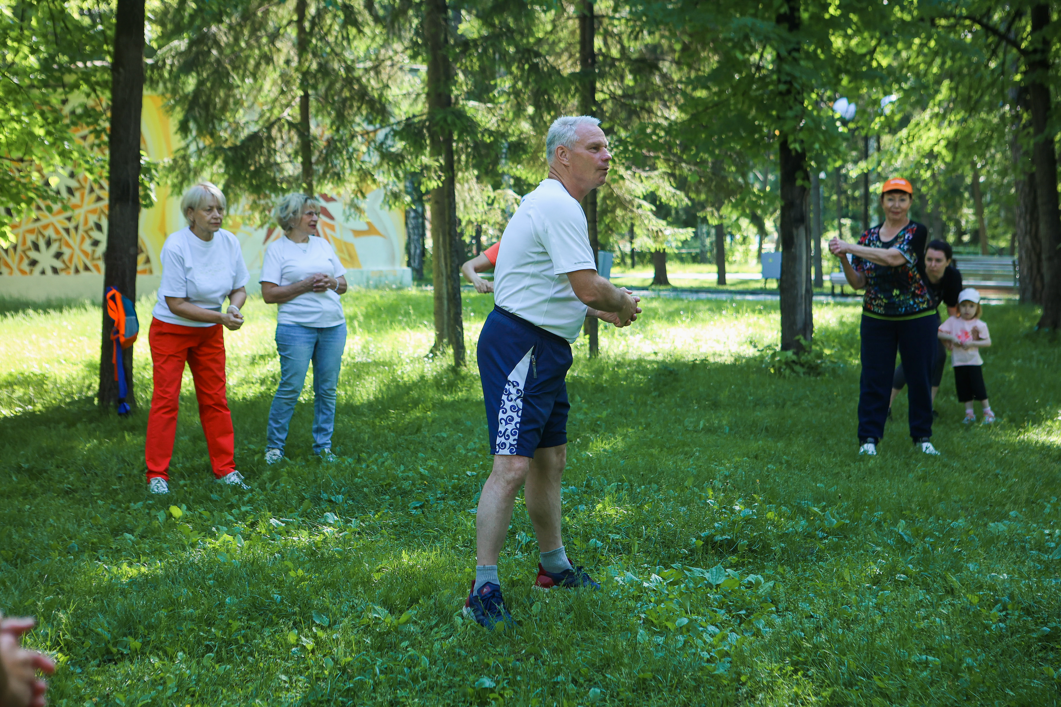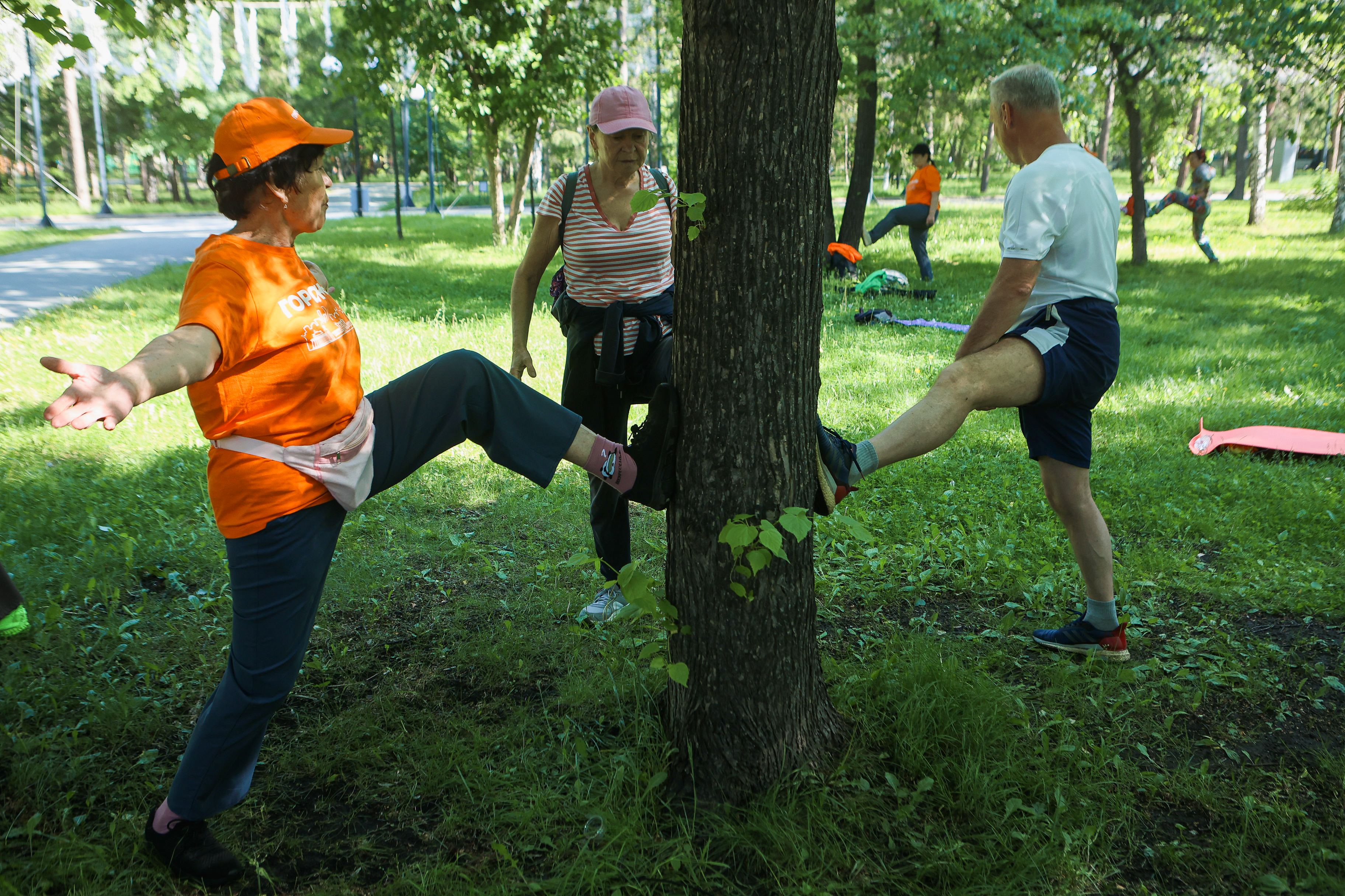 Летний сезон парковой гимнастики открыли в Новосибирске. Оздоровительные занятия проводит тренер и автор методики Владимир Ефремов. Разминка пользуется большой популярностью. Есть те, кто участвует в ней уже много лет.