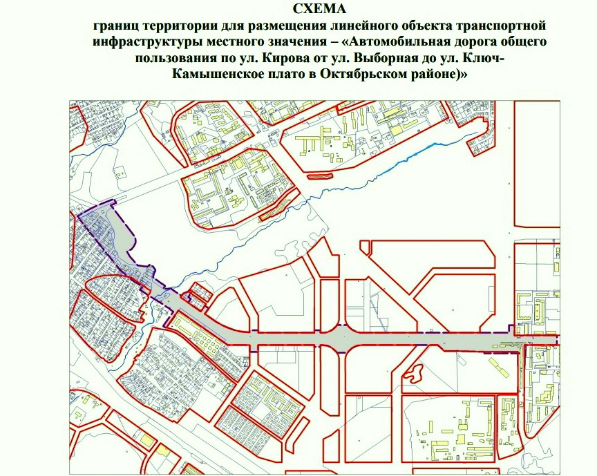 На схеме видно, что дорога проляжет через частный сектор по улицам Хитровской, Гайдара, Камышенской и через Сосновский переулок. Затем по улице Жернакова пойдёт в восточном направлении до Ключ-Камышенского.