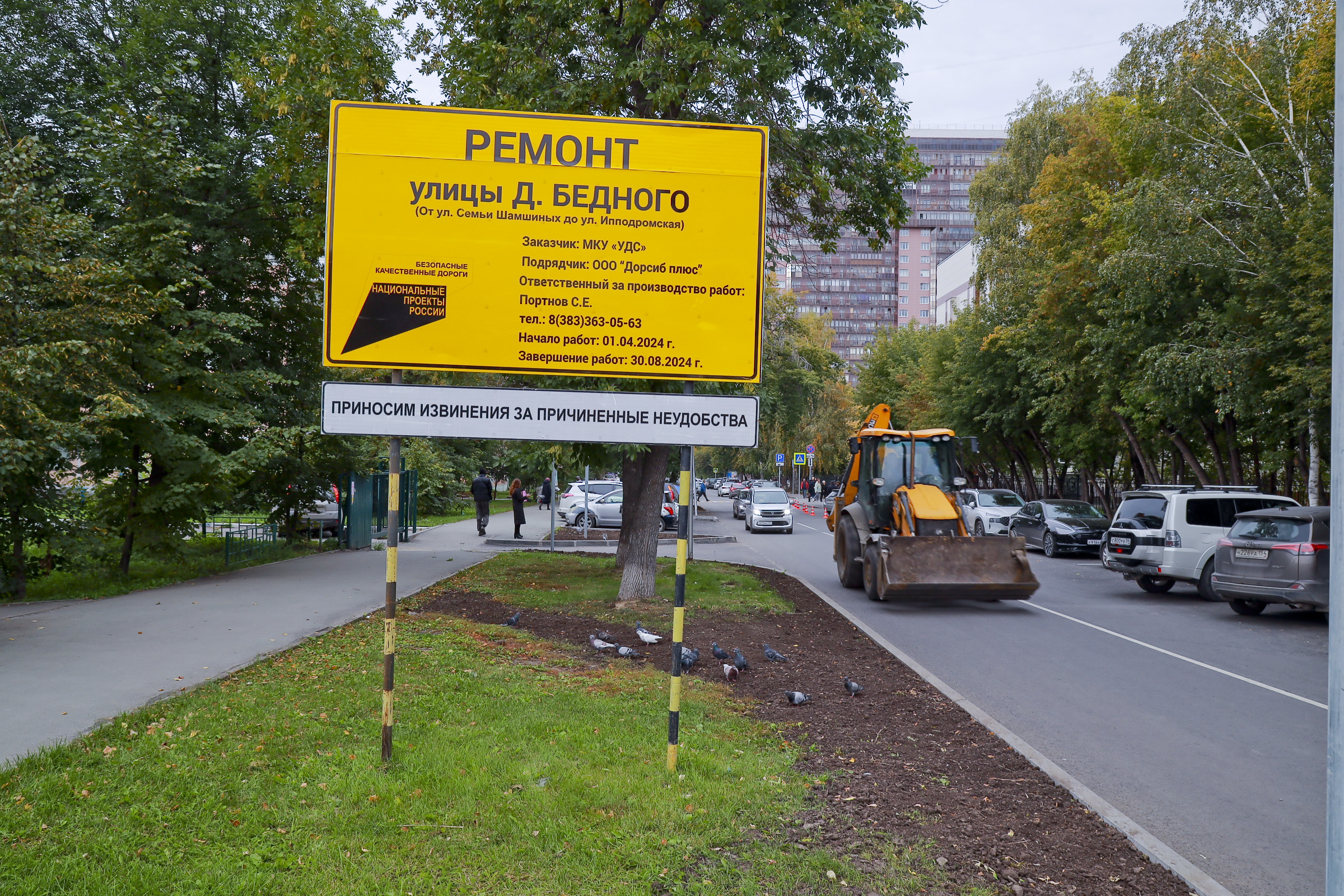 В Новосибирске завершился капитальный ремонт 800-метрового участка улицы Демьяна Бедного. Это один из объектов, которые в этом году обновляли по нацпроекту «Безопасные качественные дороги».