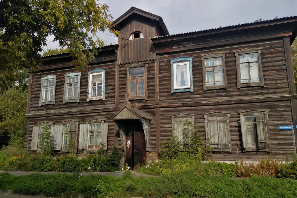 Поднявшись от Владимировской по Ногина, вы увидите старинную деревянную двухэтажку, построенную в 1928 году. У неё сохранился исторический козырёк над входом в подъезд. Здание пока не имеет охранного статуса. Но кто знает, вдруг на него обратят внимание и сохранят для потомков, как пример городской застройки Ново-Николаевска.