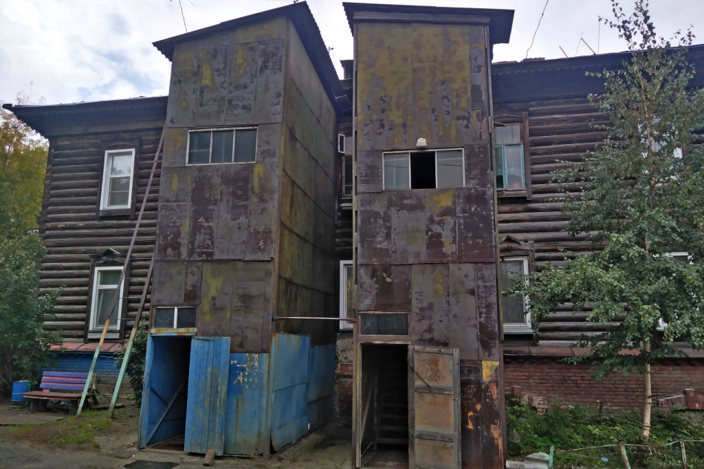Двухэтажный бревенчатый дом, построенный в 1913 году на улице Нобелевской для руководства спиртзавода, несколько лет назад признали аварийным. Его должны расселить и снести. Когда-то его входная группа была пристроена из дерева, но, по рассказам, жильцов, в неё врезалась большая машина и снесла не очень прочную конструкцию. После ДТП, подъезды к дому возвели из листового железа, лестницы внутри тоже сварили из металла. На первый взгляд это странное решение, но жильцы давно пр...