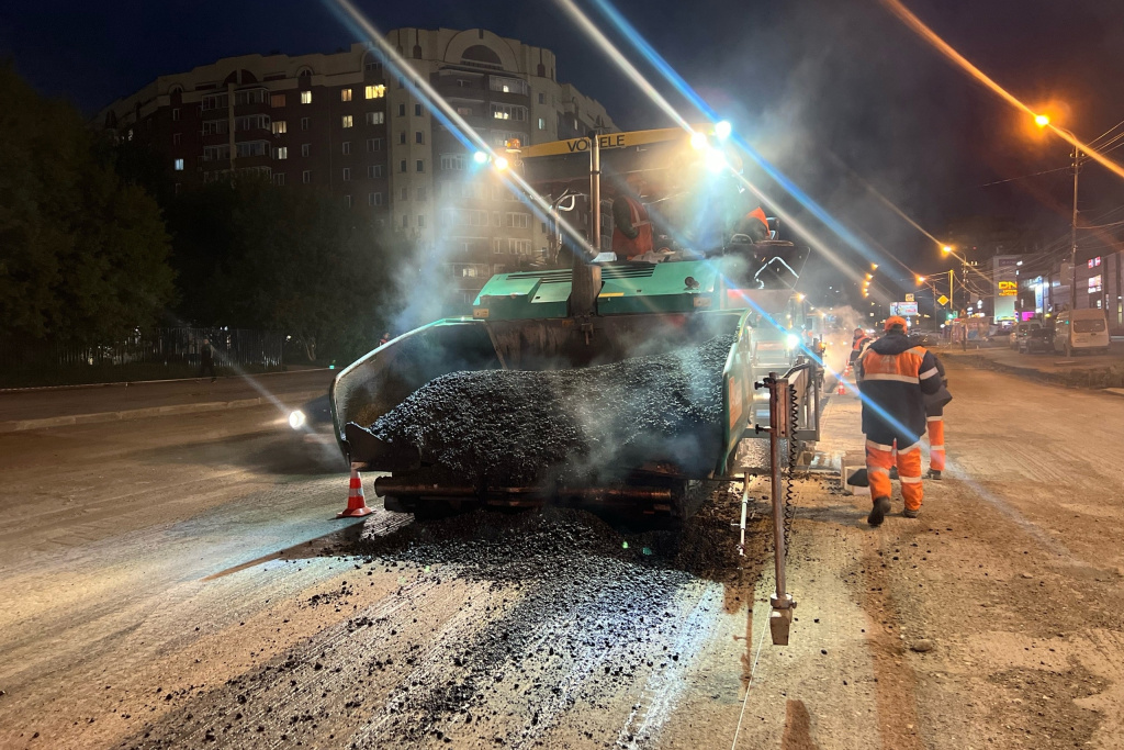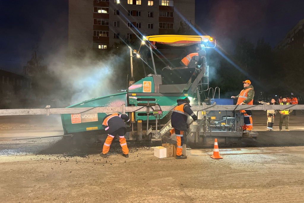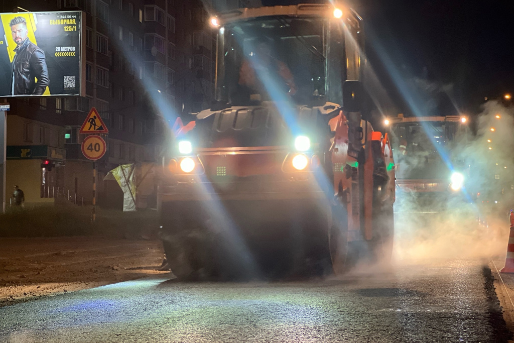Успеть до конца лета: как улицу Выборную по ночам закатывают в асфальт