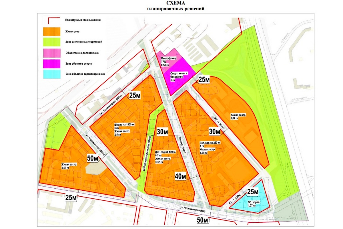 Кроме того, во дворах жилых домов застройщику предстоит разместить не менее трёх площадок размером 30×15 метров для игровых видов спорта.