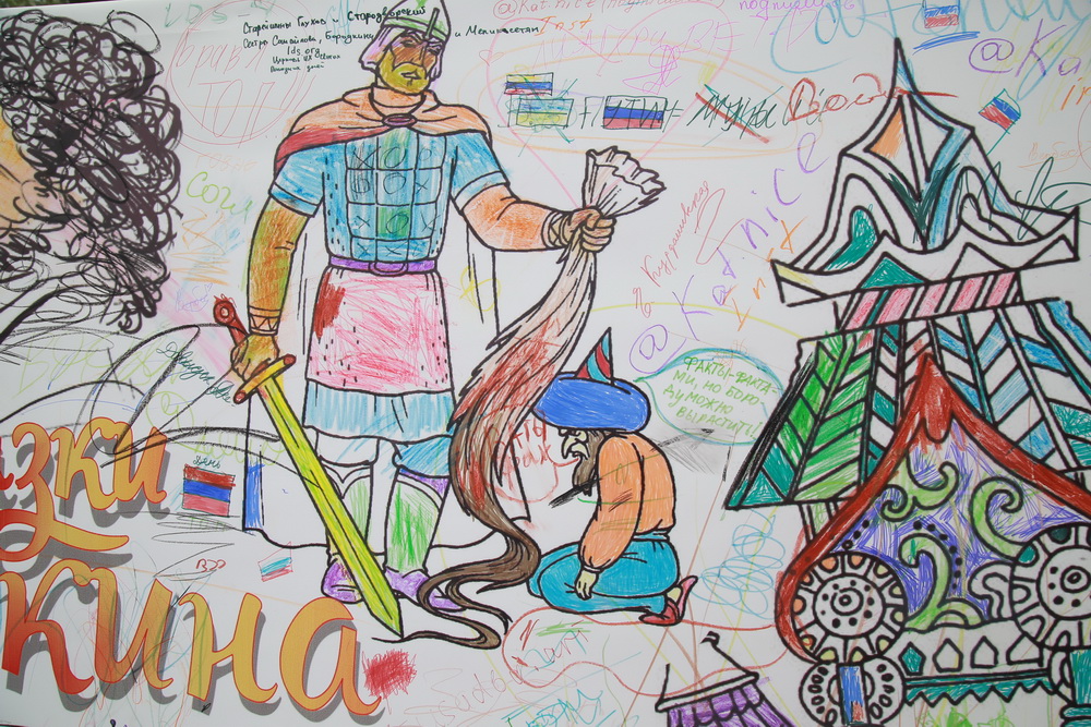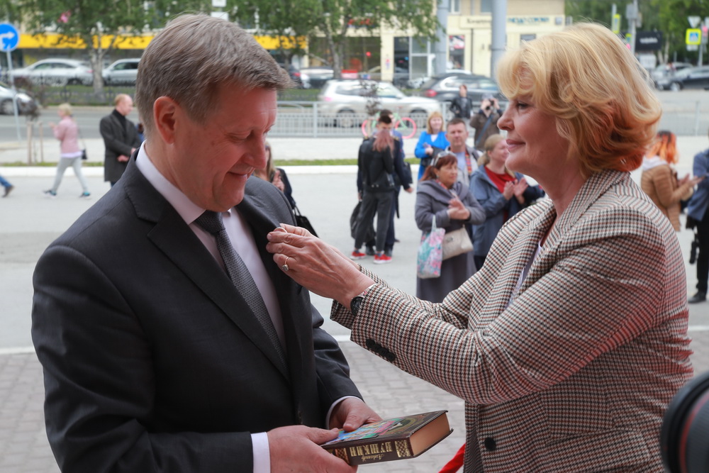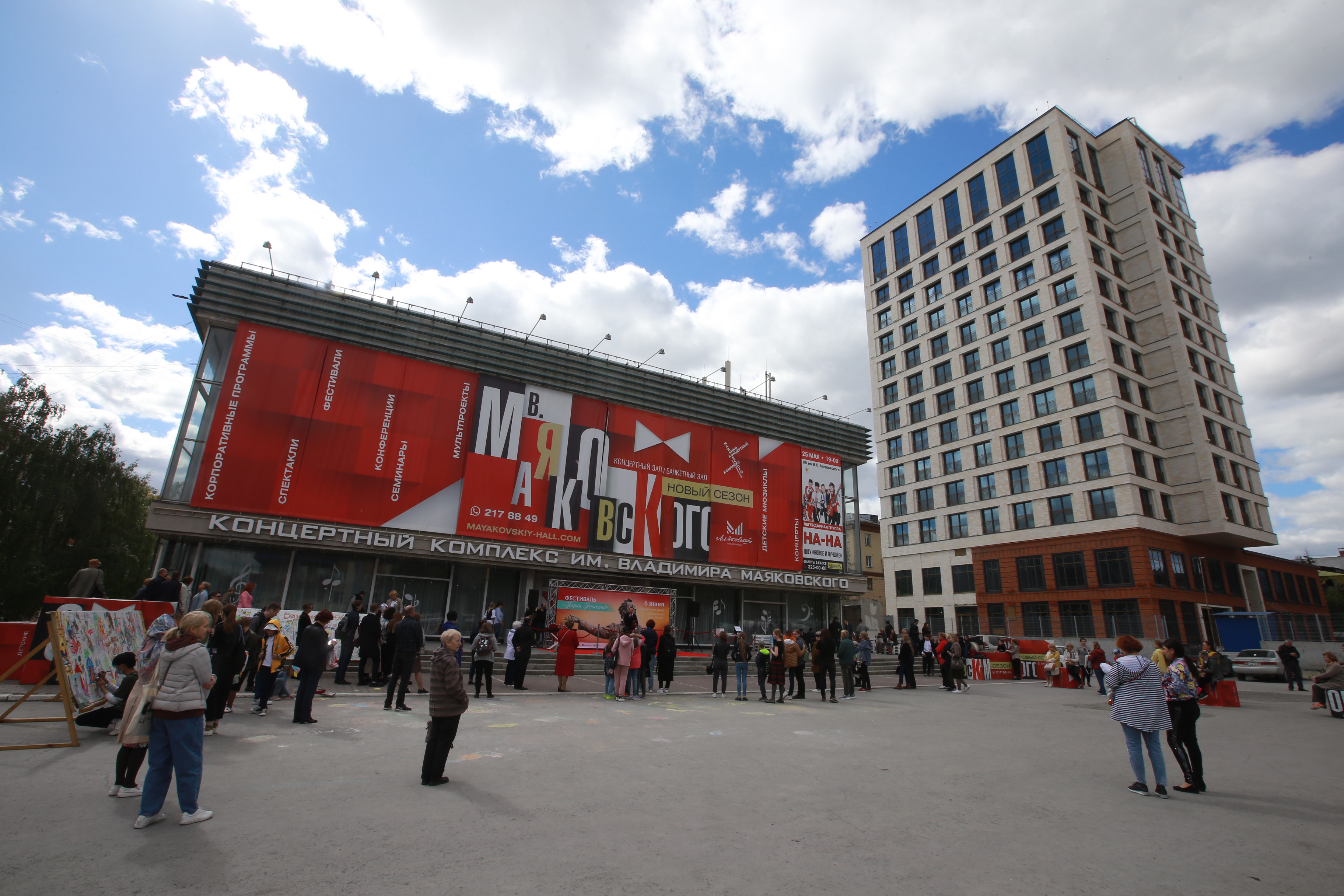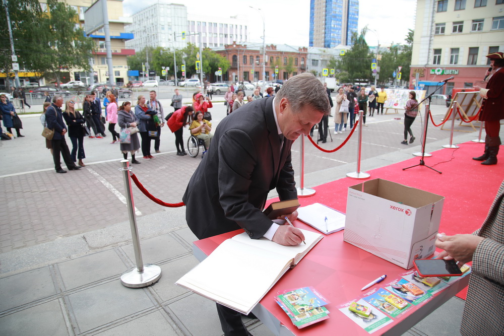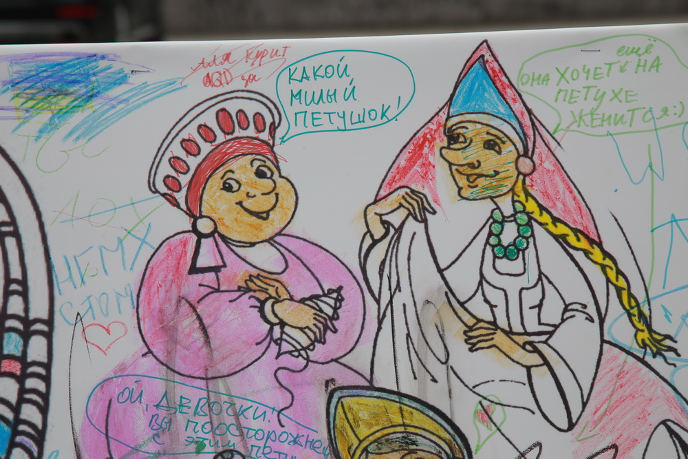 Возле ККК им. Маяковского прошло представление: детям показали сказки «У Лукоморья» и «Сказку о царе Салтане», а мэр Анатолий Локоть зачитал стих.