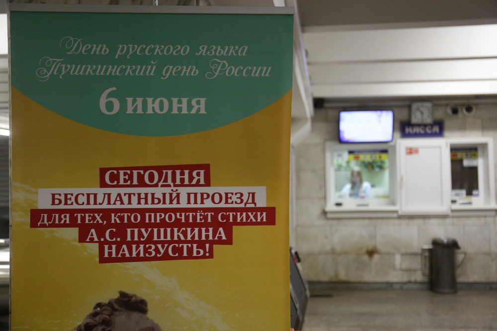 Городской метрополитен предоставил возможность новосибирцам бесплатно прокатиться на поезде — при условии, что на одной из семи станций человек расскажет наизусть стихотворение поэта.