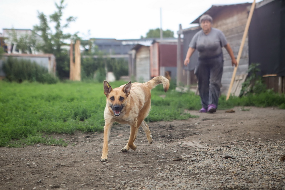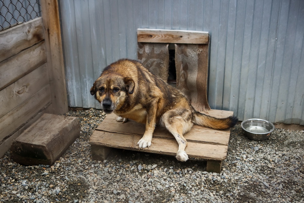 Есть и старички. Например, бабушка по кличке Морковка — чистопородный алабай. Ей уже больше десяти лет. У кого-то она жила, стала стареть, глохнуть, и её выбросили в жилом микрорайоне. Наш волонтёр обнаружил её в детской песочнице, приманил на кусочек колбаски в машину и привёз к нам. У нас Морковка живёт уже несколько лет.
