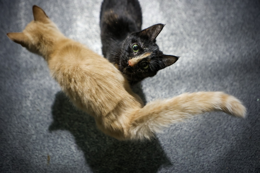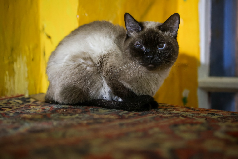 Две сиамские кошечки попали в приют в прошлом году из квартиры, где жили две пожилые сестры. Одна умерла, и её тело пролежало в помещении три месяца. Вторая женщина, страдавшая психическим расстройством, всё это время жила здесь же вместе с 30 сиамскими кошками. Я забрала восемь животных, остальных пристроили другие зоозащитники. Из восьми в приюте остались две, шестерых усыновили.
