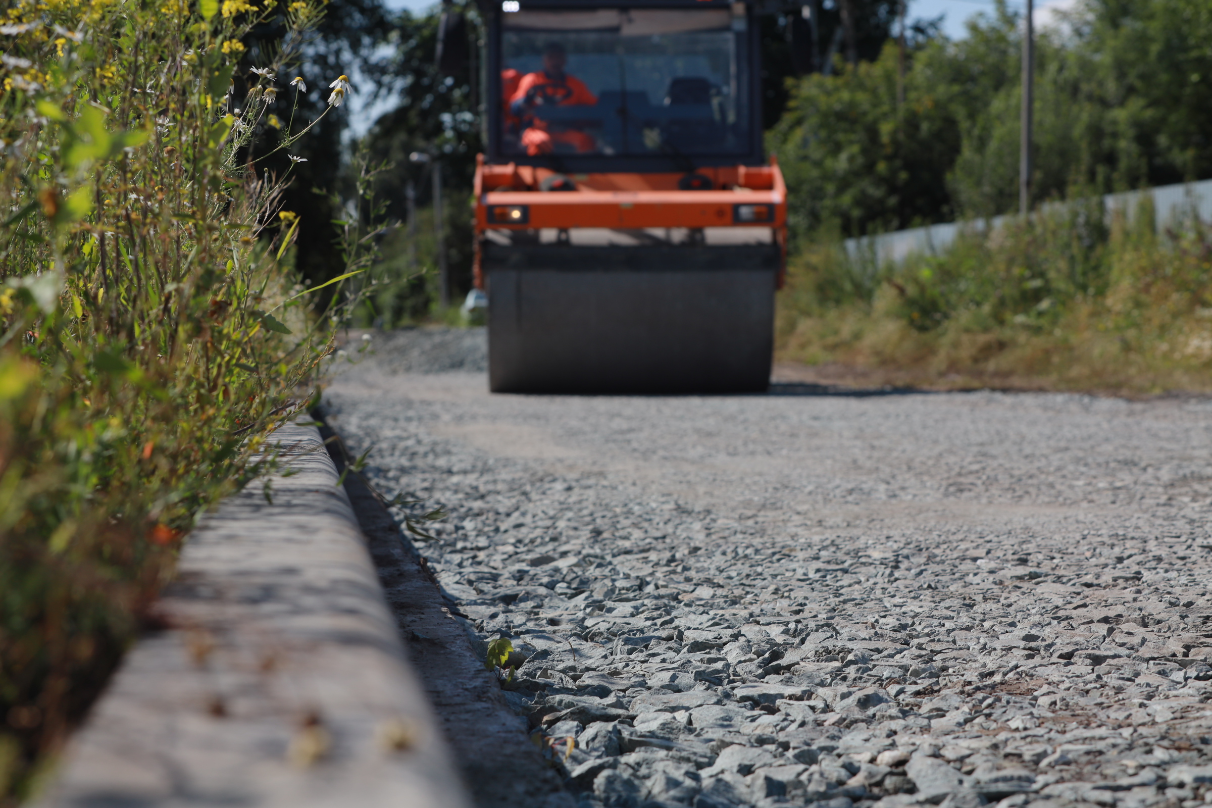 В Калининском районе Новосибирска асфальтируют улицы частного сектора. На Тайшетской рабочие сооружают основание из щебня, завтра начнут укладывать верхний слой покрытия.