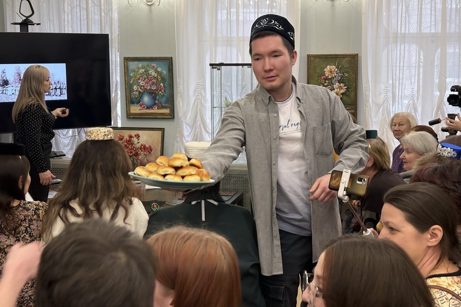 Также присутствовавшие узнали о традиционном костюме, танцах и национальной кухне барабинских татар. В завершение мероприятия Зульфия и Зариф угостили участников национальной выпечкой — перемячом.