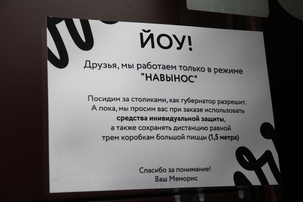 «Просим вас сохранять дистанцию, равную трём коробкам большой пиццы», — обращаются к посетителям в одной из новосибирских пиццерий.