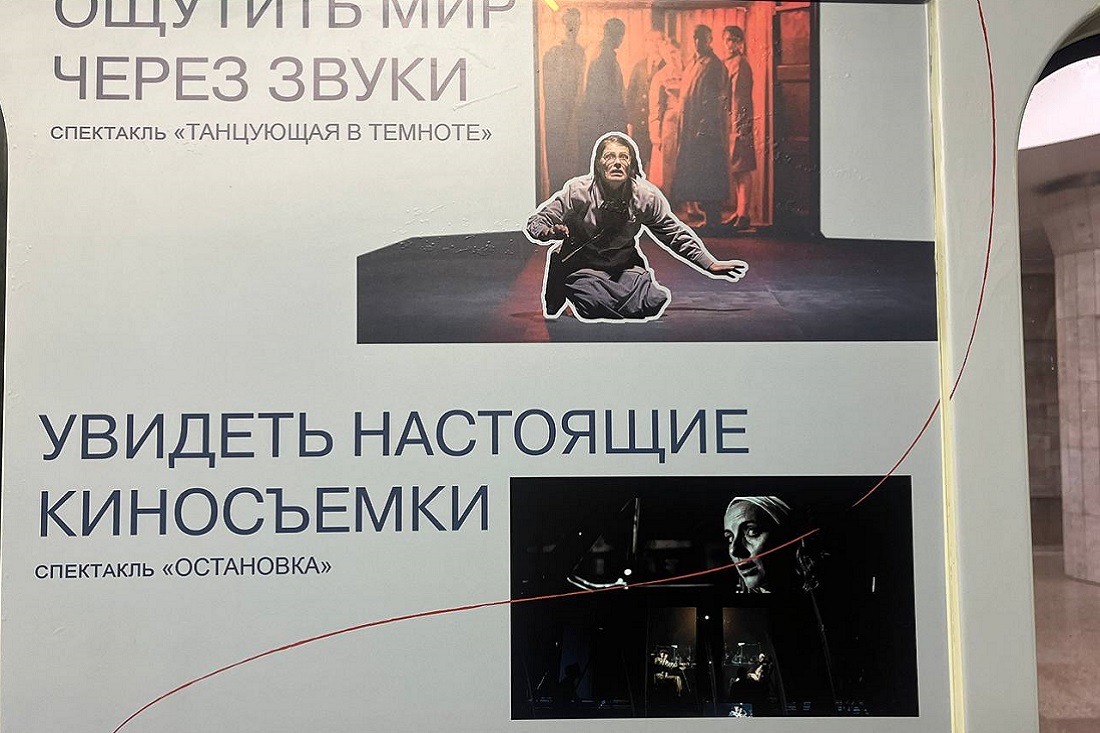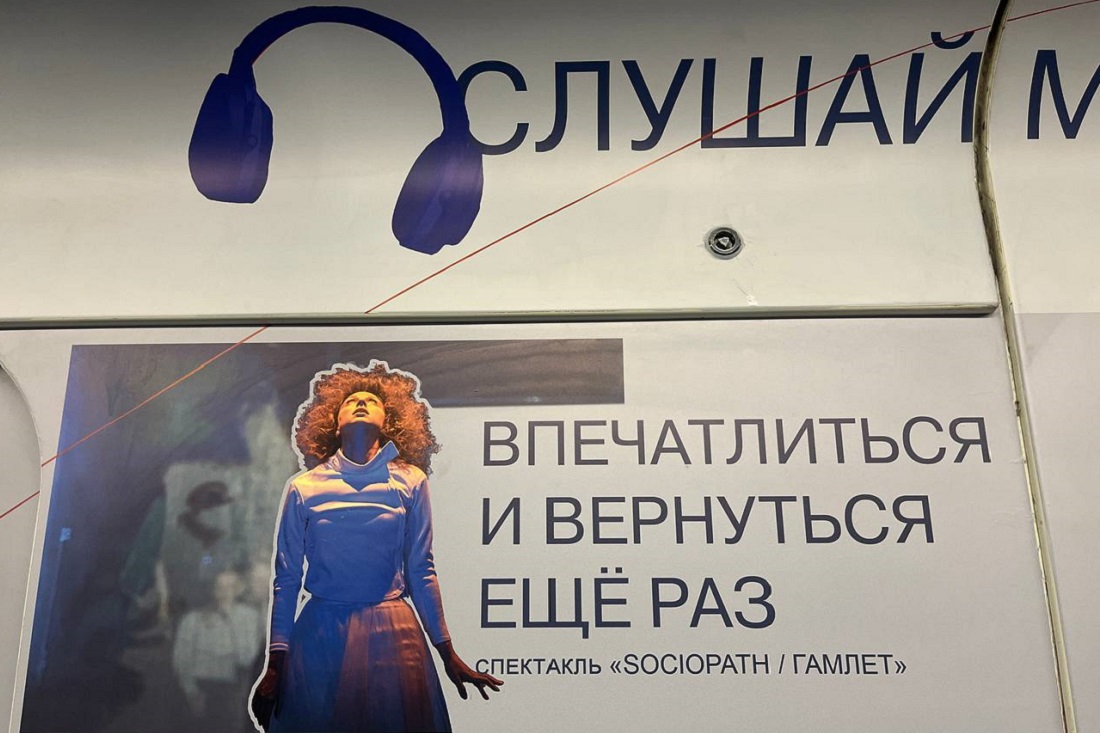 В честь открытия экспозиции актёры устроили перформанс. Вагон с театральными историями будет курсировать по двум веткам метро на протяжении трёх месяцев.