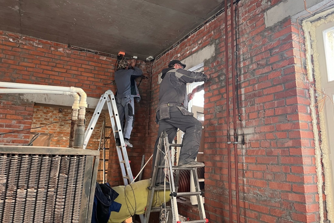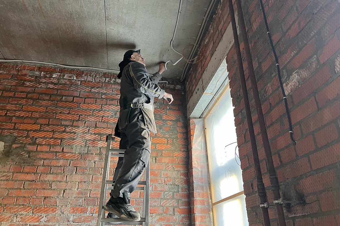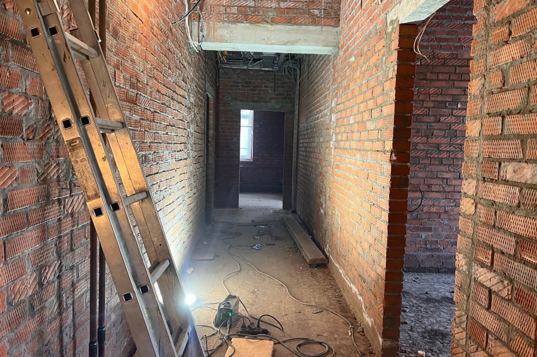 Напомним, здание восстанавливают практически с нуля. Прежнюю постройку из шлакоблока пришлось разобрать, чтобы сделать качественный фундамент.