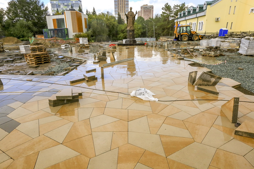 Там уложили большую часть брусчатки, сейчас восстанавливают центральную лестницу Нарымского сквера, строят подпорную стенку и монтируют систему освещения. Скоро будут высаживать крупномерные деревья, кустарники и многолетние цветы.