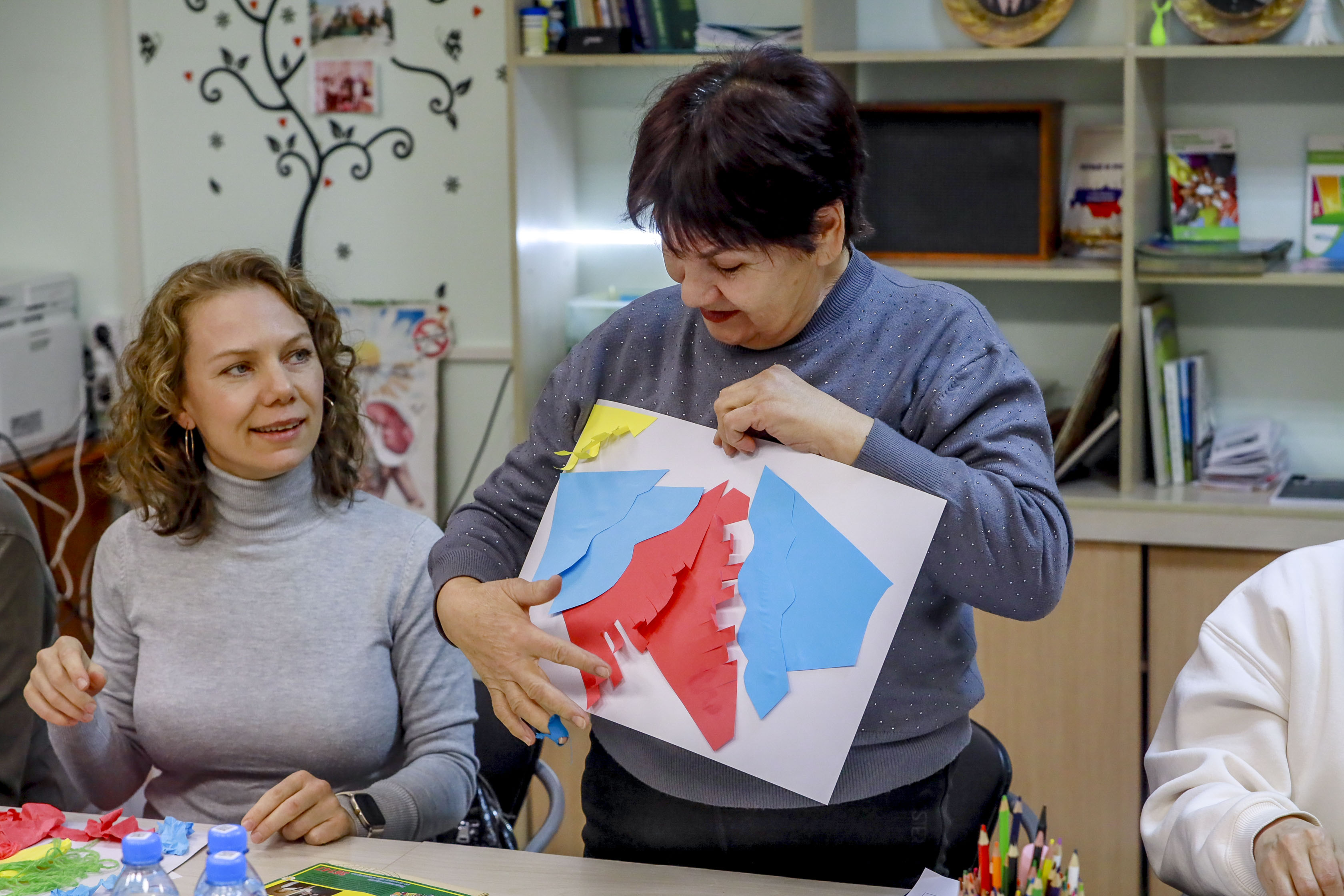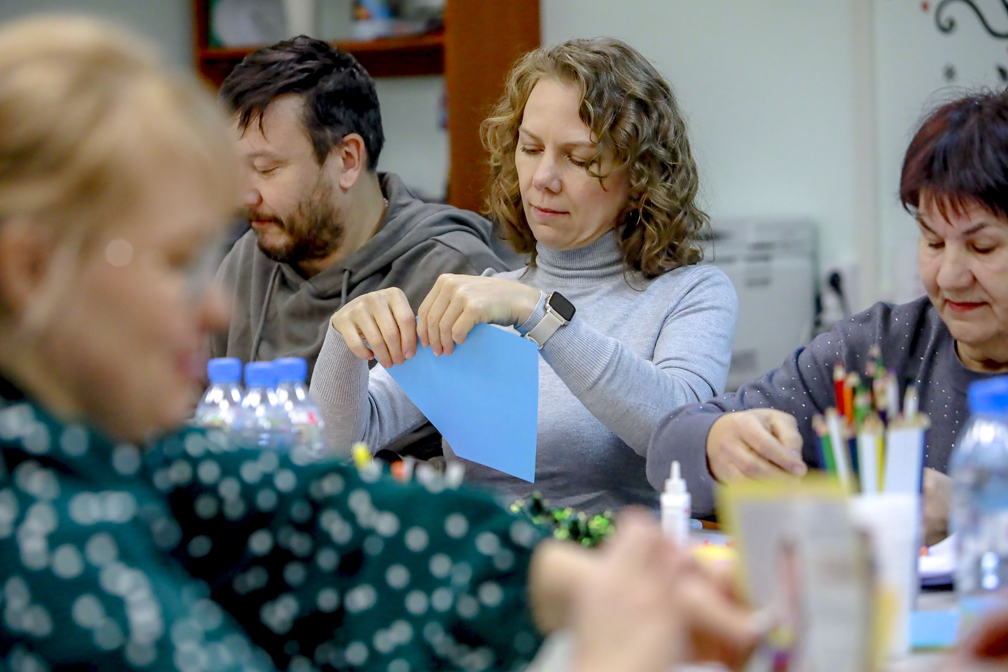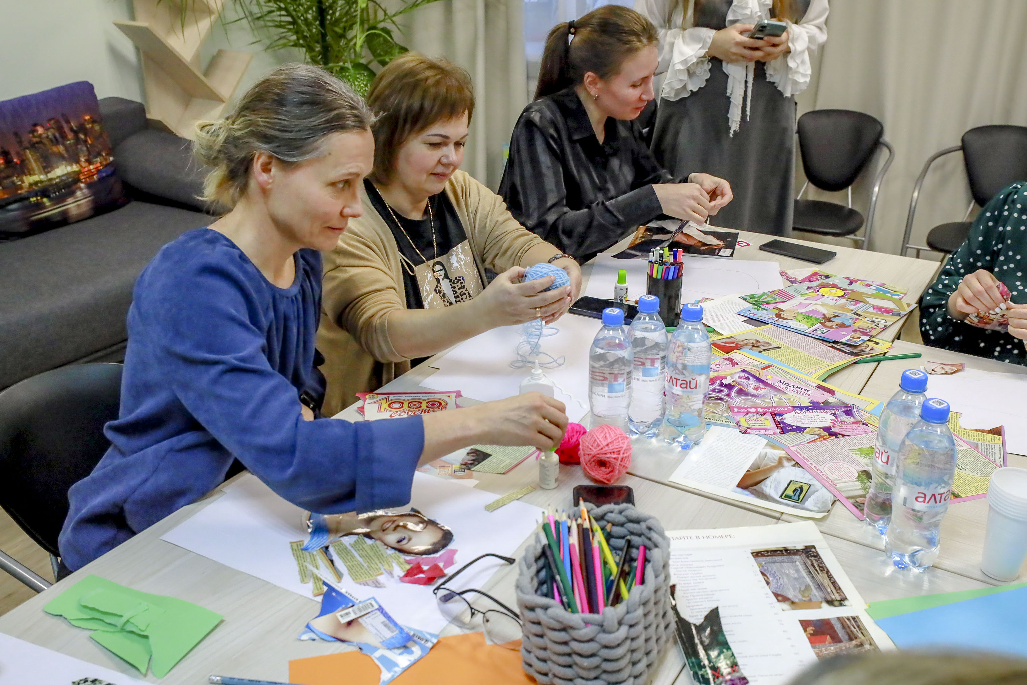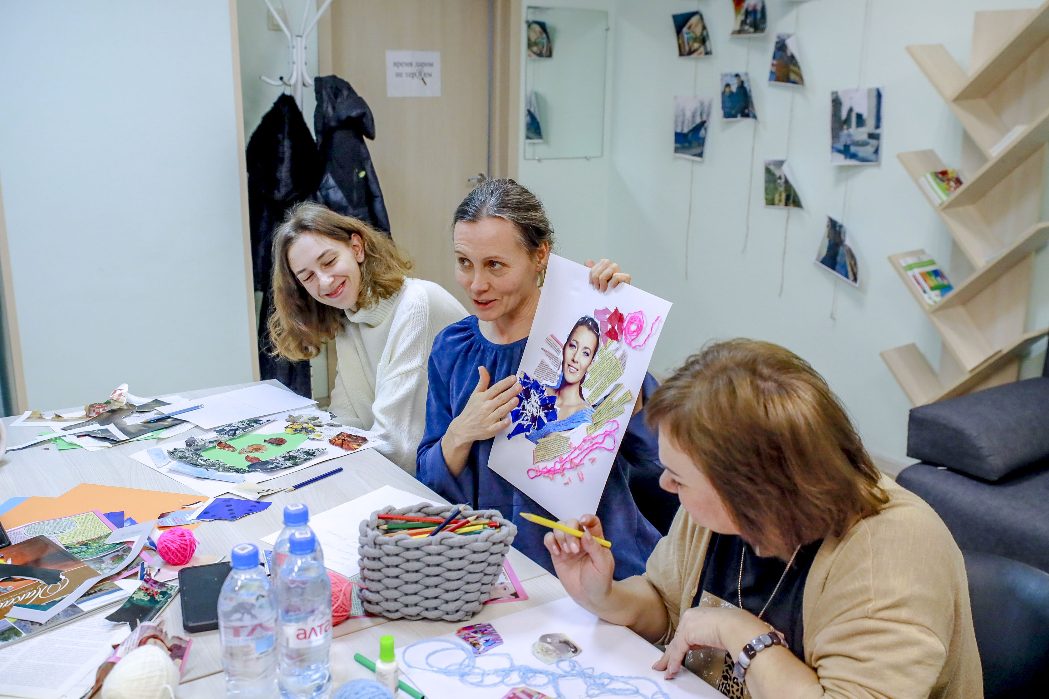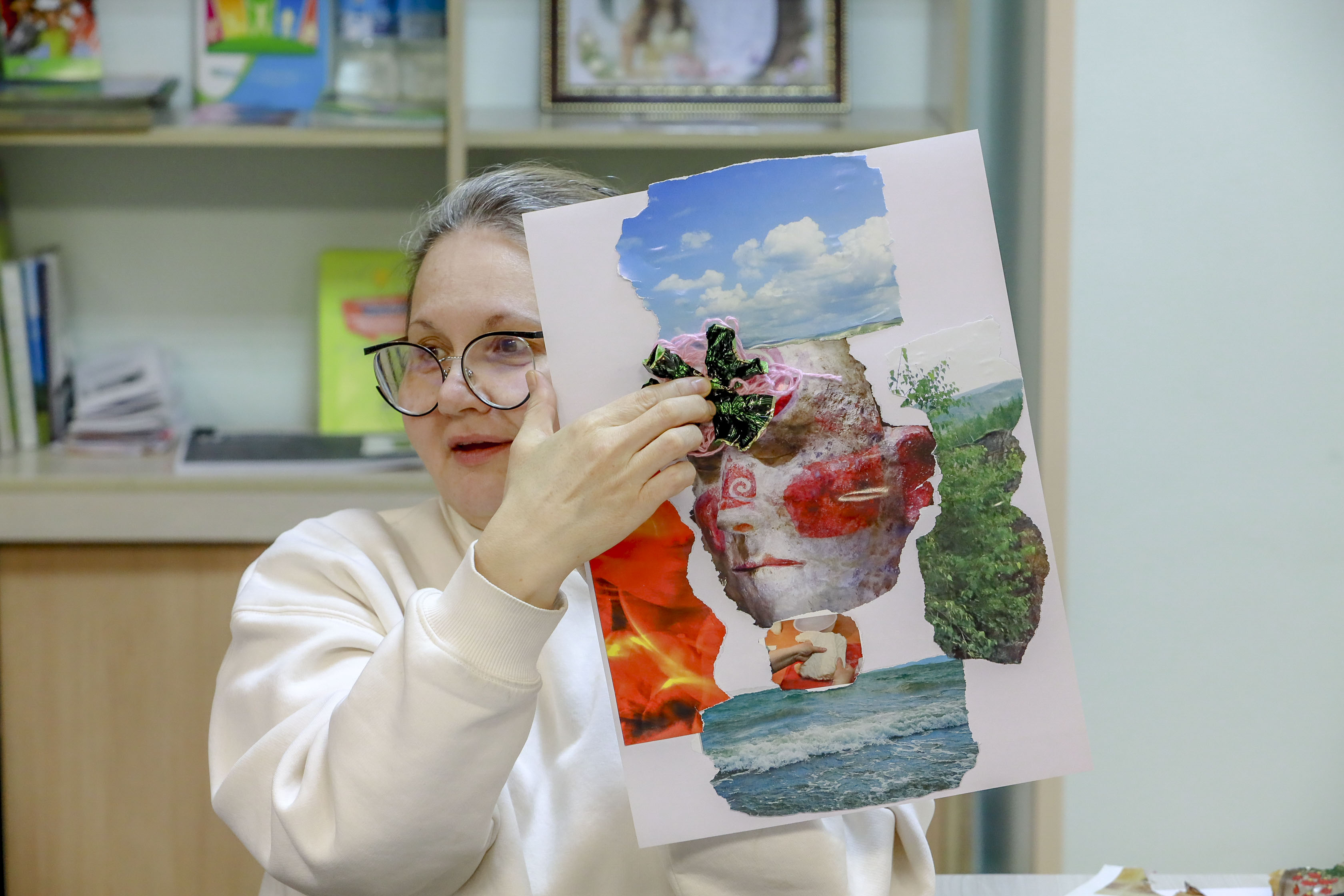 В пятницу, 23 января, в центре помощи детям «Тёплый дом» прошёл необычный мастер-класс для замещающих родителей. С помощью красок, клочков бумаги и ниток участники создавали автопортреты «без лиц» — визуальные образы своего внутреннего состояния. Занятие было посвящено одной из самых острых тем — эмоциональному выгоранию.