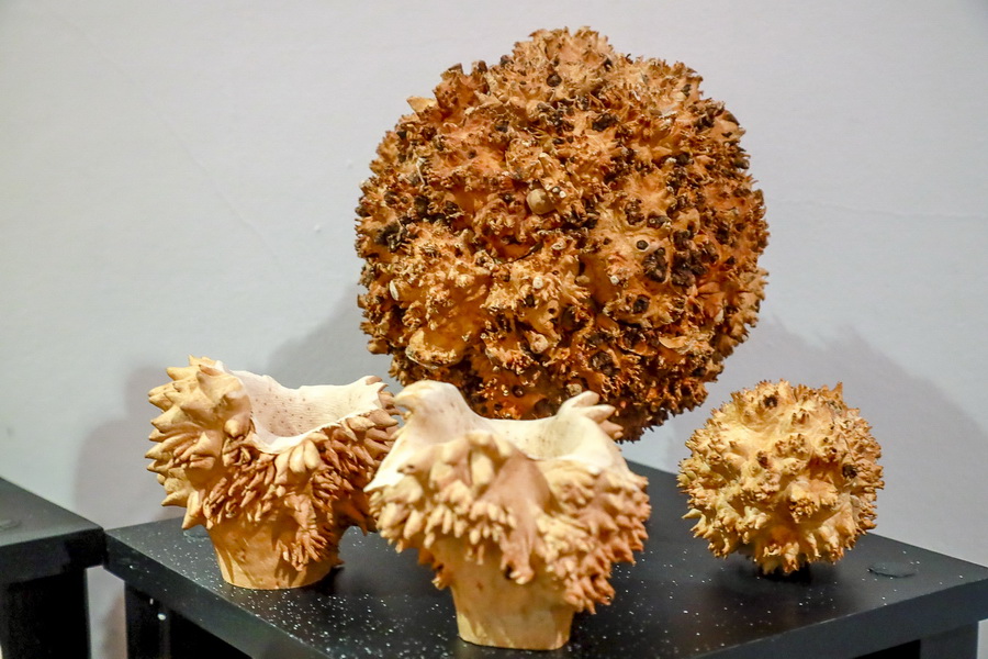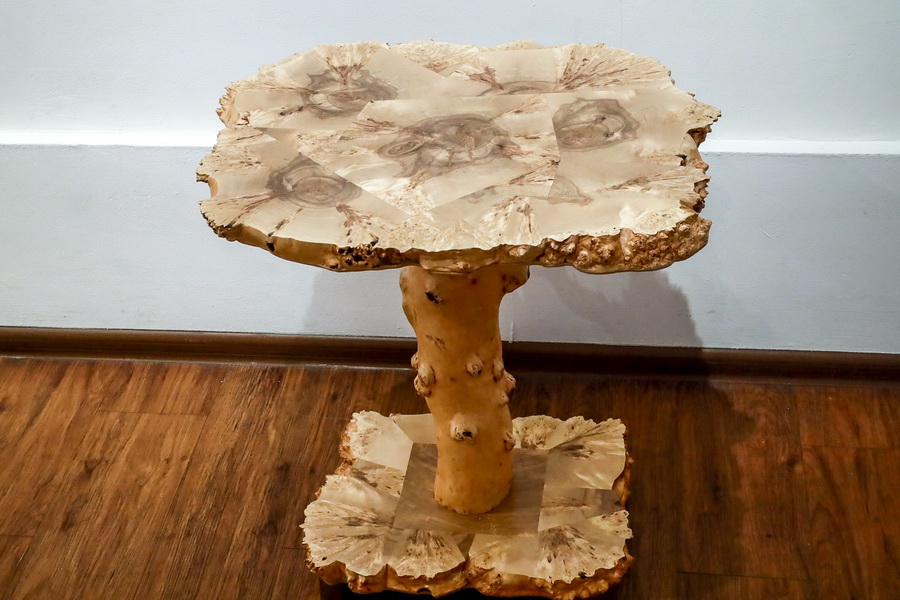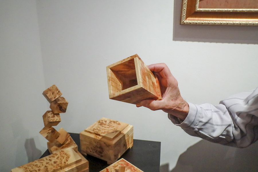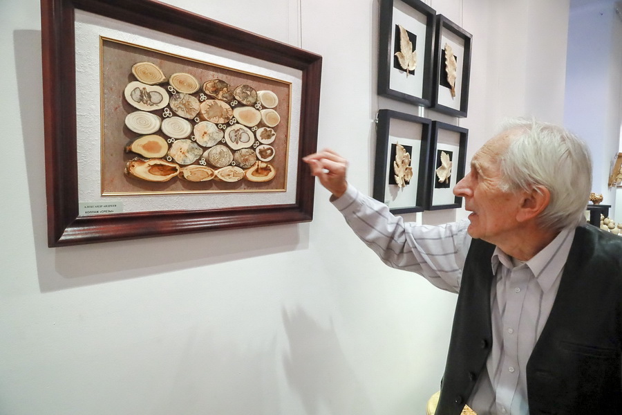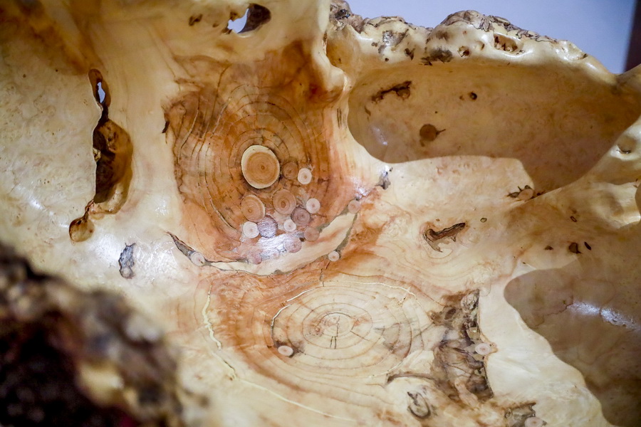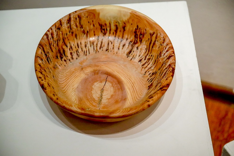 Особое внимание привлекают скульптуры, шкатулки и тарелки, на которых кропотливо и с геометрической точностью выскоблены миниатюрные рисунки. Каждый экспонат пропитан глубиной, мудростью и опытом, полученным за долгие годы работы у станка.