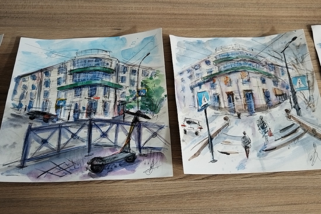 По словам куратора «Ново-Сибирск. Конструктивизм!» Карины Ляниковой, взять для календаря рисунки, а не фотографии она решила тогда, когда увидела масляные работы художницы Анны Дорфман с изображением Госбанка и Дома с часами. Однако для издания решили использовать акварель, масло здесь только на обложке.