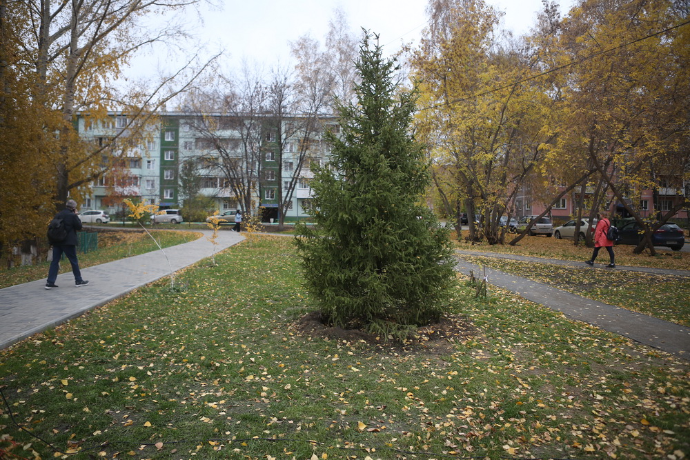 Это депутатский подарок к Году педагога и наставника и к 90-летию района. Летом в Педагогическом сквере высадили берёзы, а в честь торжественного открытия добавили молодых елей, которые стойко выдерживают суровые зимы.