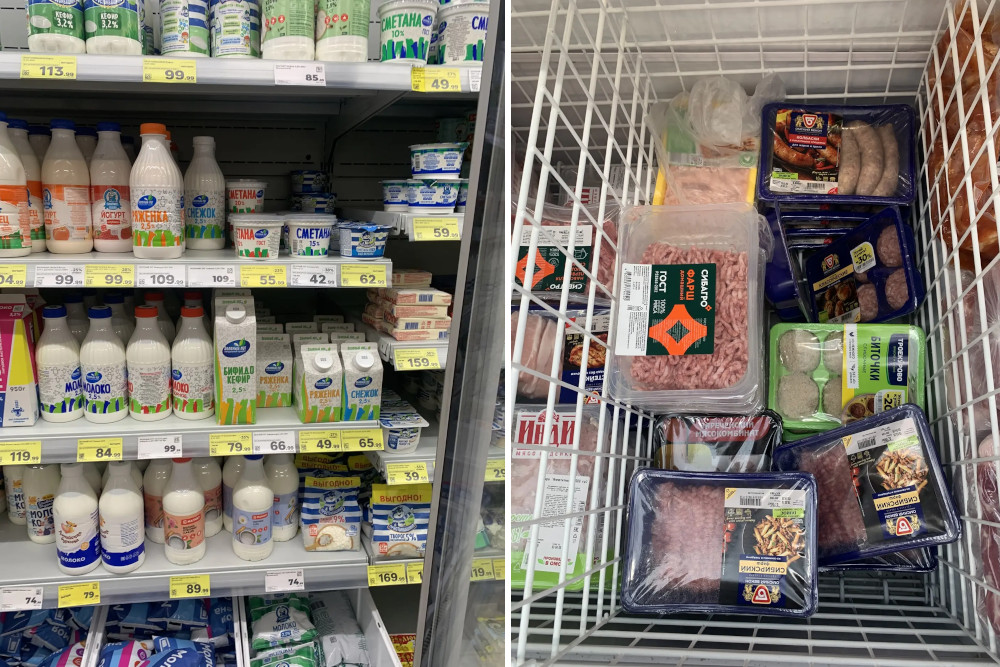 Мониторинг показал, что в продаже достаточно мяса. Покупателям предлагают мякоть на кости, антрекоты, субпродукты, фарши, птицу (курица, утка), полуфабрикаты и колбасные изделия в промышленной упаковке. Молочную продукцию завозят производители Новосибирской области и других регионов СФО, а также федеральные поставщики.