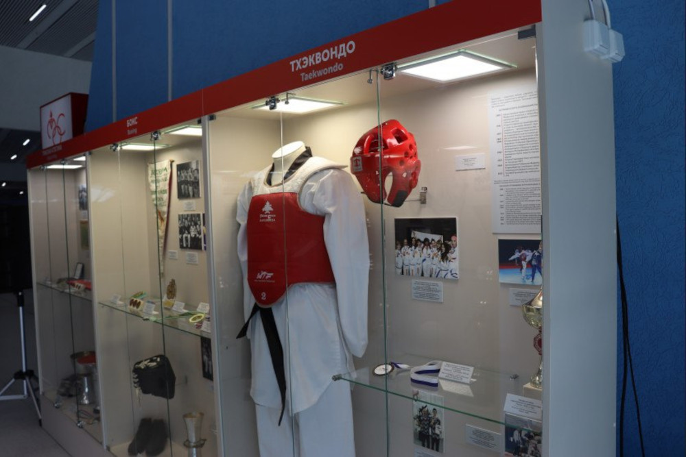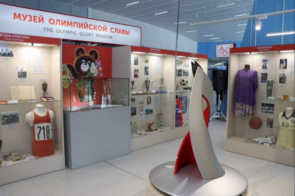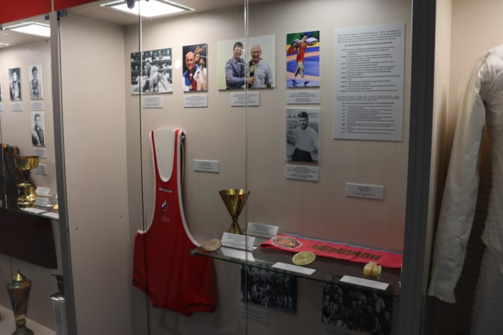 Здесь можно увидеть борцовское трико и обувь Александра Карелина, олимпийский костюм Станислава Позднякова или зашитые вручную шиповки Андрея Перлова.