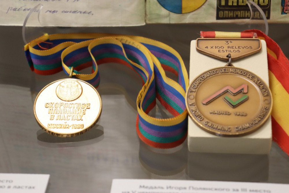 Одна из витрин посвящена спортсменам с ограниченными возможностями. Посетители увидят маску для фехтования и шпагу Максима Шабурова — первого новосибирца, которому удалось выиграть медаль Паралимпийских игр.