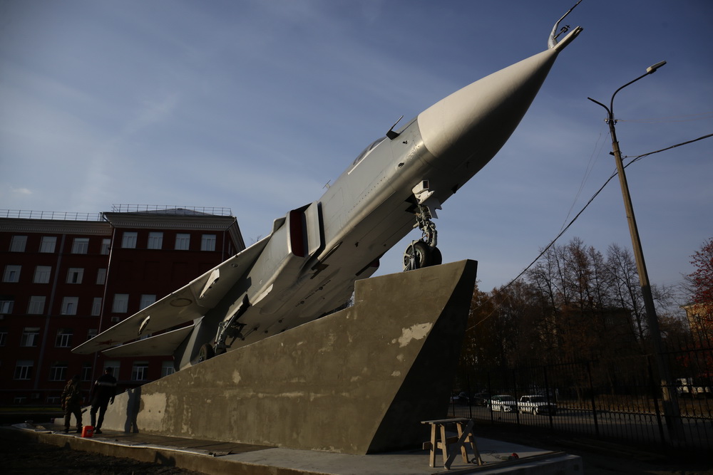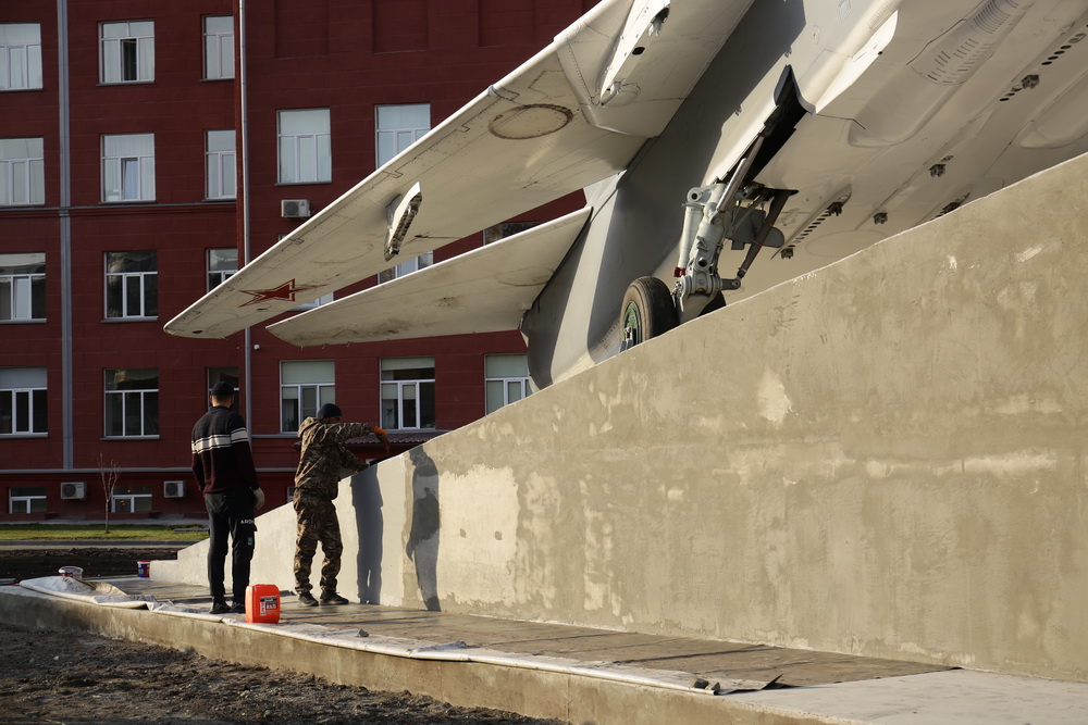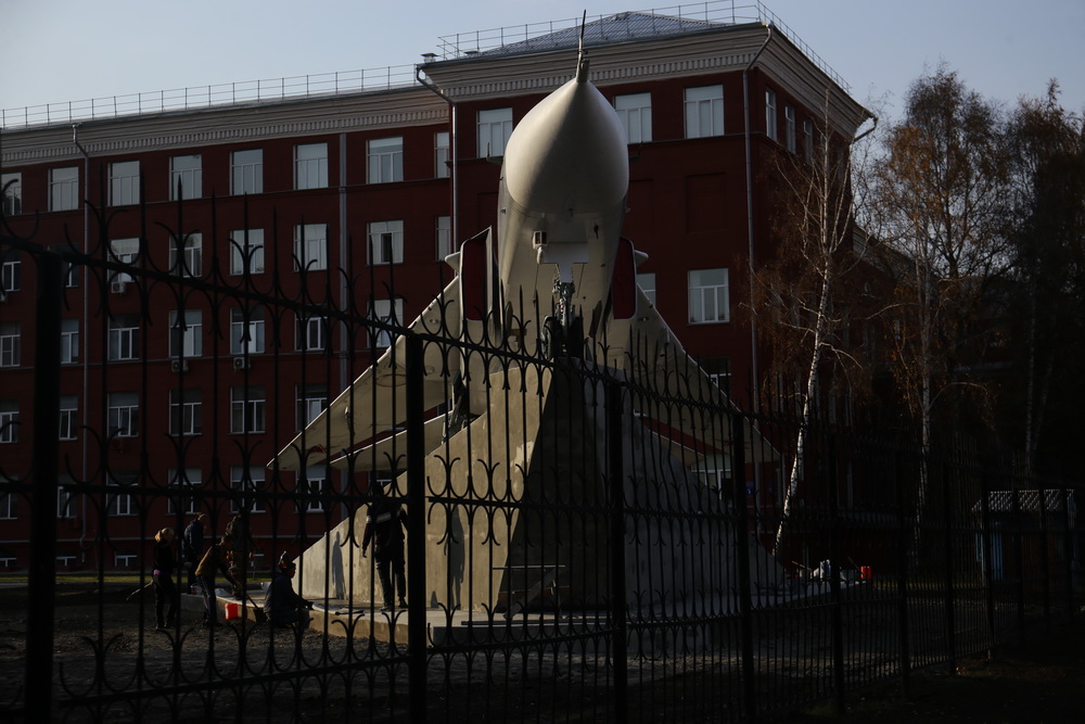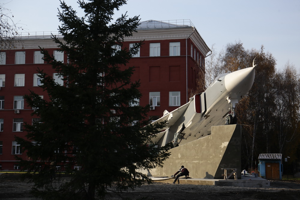 «Это хороший самолёт, смерть он не нёс», — говорит об установленном в сквере перед НГТУ бомбардировщике Су-24 председатель ассоциации выпускников вуза Владимир Пономарёв. Самолёт доставили к Новосибирскому государственному техническому университету ночью 19 октября, а сегодня закончили водружать на постамент.
