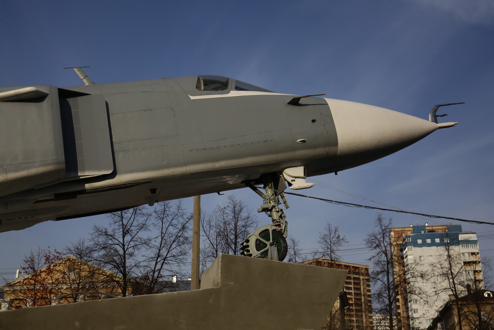 В сквере перед НГТУ установили на постамент бомбардировщик Су-24