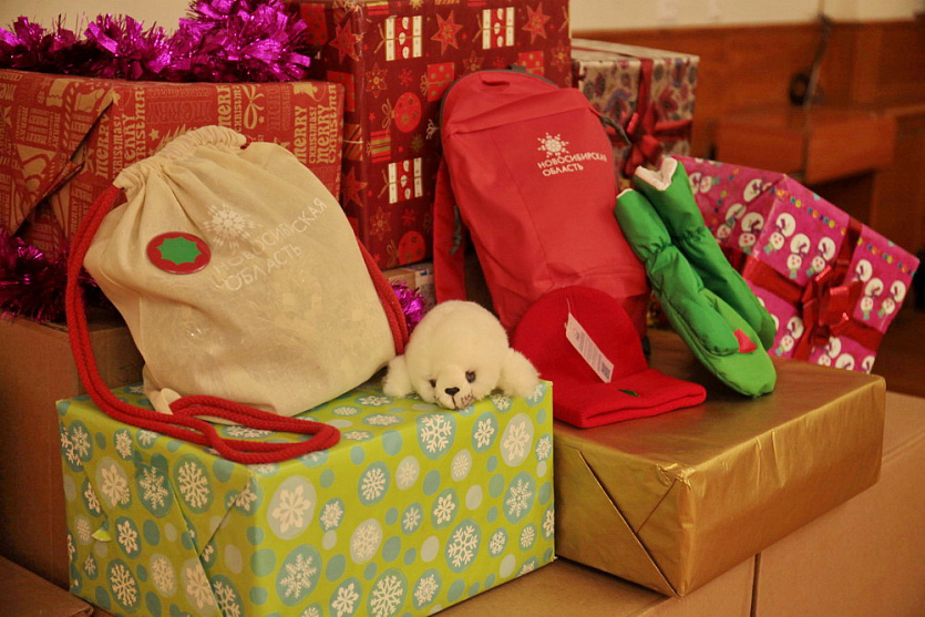 Ирина Саркисян: Для детей школьного возраста собрали рюкзак, в котором шарф, шапка, варежки, брендированные нашим знаком. Рюкзак брендирован Новосибирской областью, потому что это наш совместный проект с регионом.