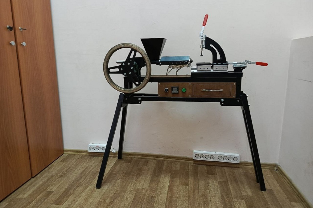 Технически процесс измельчения крышечек на велошредере выглядит так: пластик загружают в отдельный отсек, человек крутит педали и перемалывает отходы в стружку. Затем её засыпают в специальный инжектор и изготавливают сувениры.
