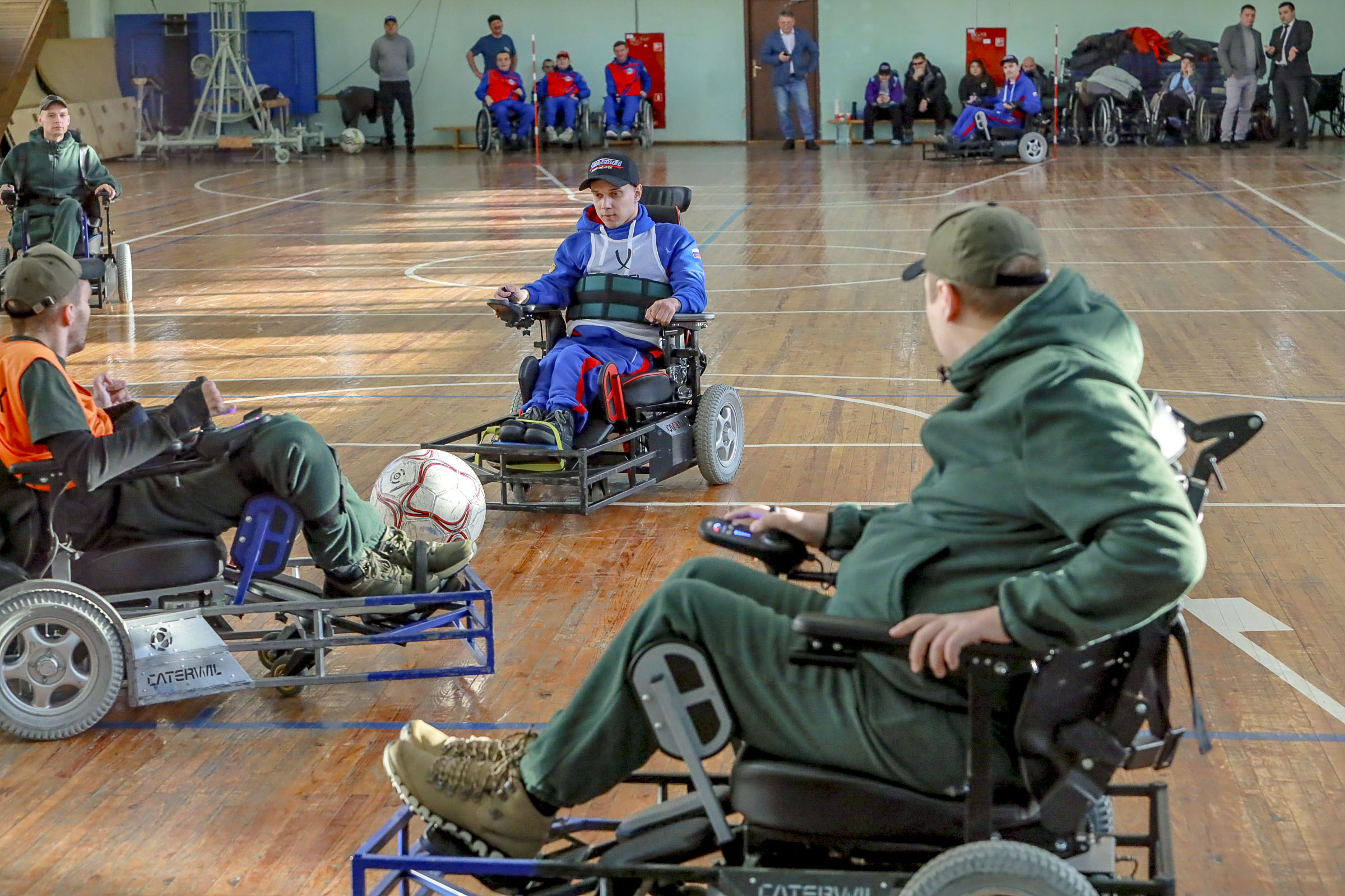Это модификация классической игры для людей с поражением опорно-двигательного аппарата. По полю они передвигаются на специальных колясках. Среди участников состязания — ветераны СВО.
