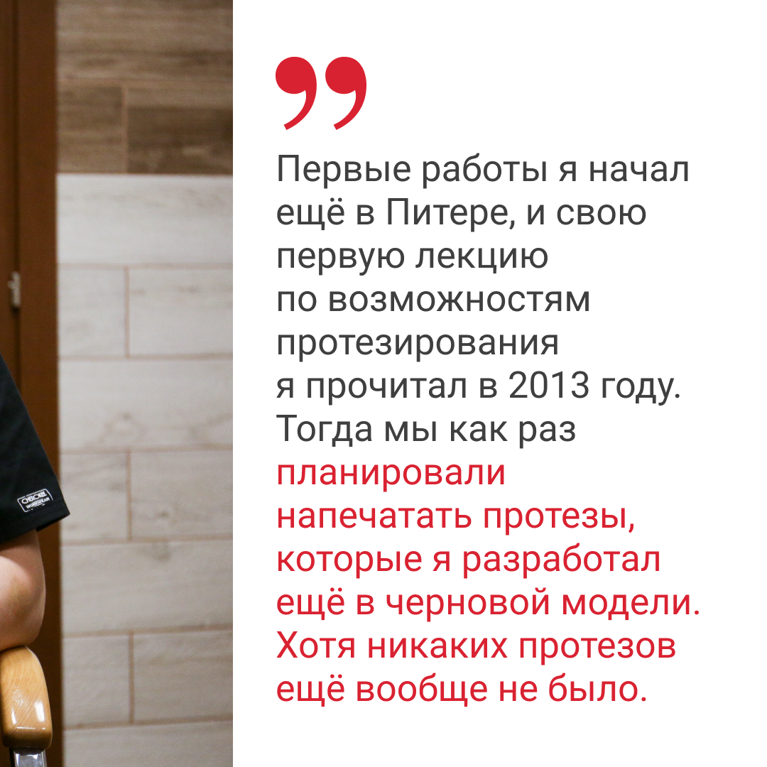 — Рутинно, со всеми этапами — да. Есть ребята в Москве, Питере, Беларуси, которые пишут мне, я им разрабатываю, печатаю, а затем отправляю протезы. После тщательного изучения и подготовки пациента врачи выполняют протезирование по нашей технологии. Это невероятно и очень здорово, что другие люди в других городах могут с нашей помощью делать такие операции, которые не были доступны нигде в мире.