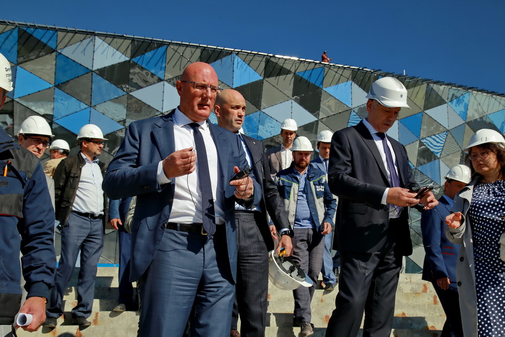 Сегодня, 23 августа, обстановку на объекте оценил вице-премьер правительства РФ Дмитрий Чернышенко. Он потребовал разобраться в причинах срывов срока сдачи ледовой арены.