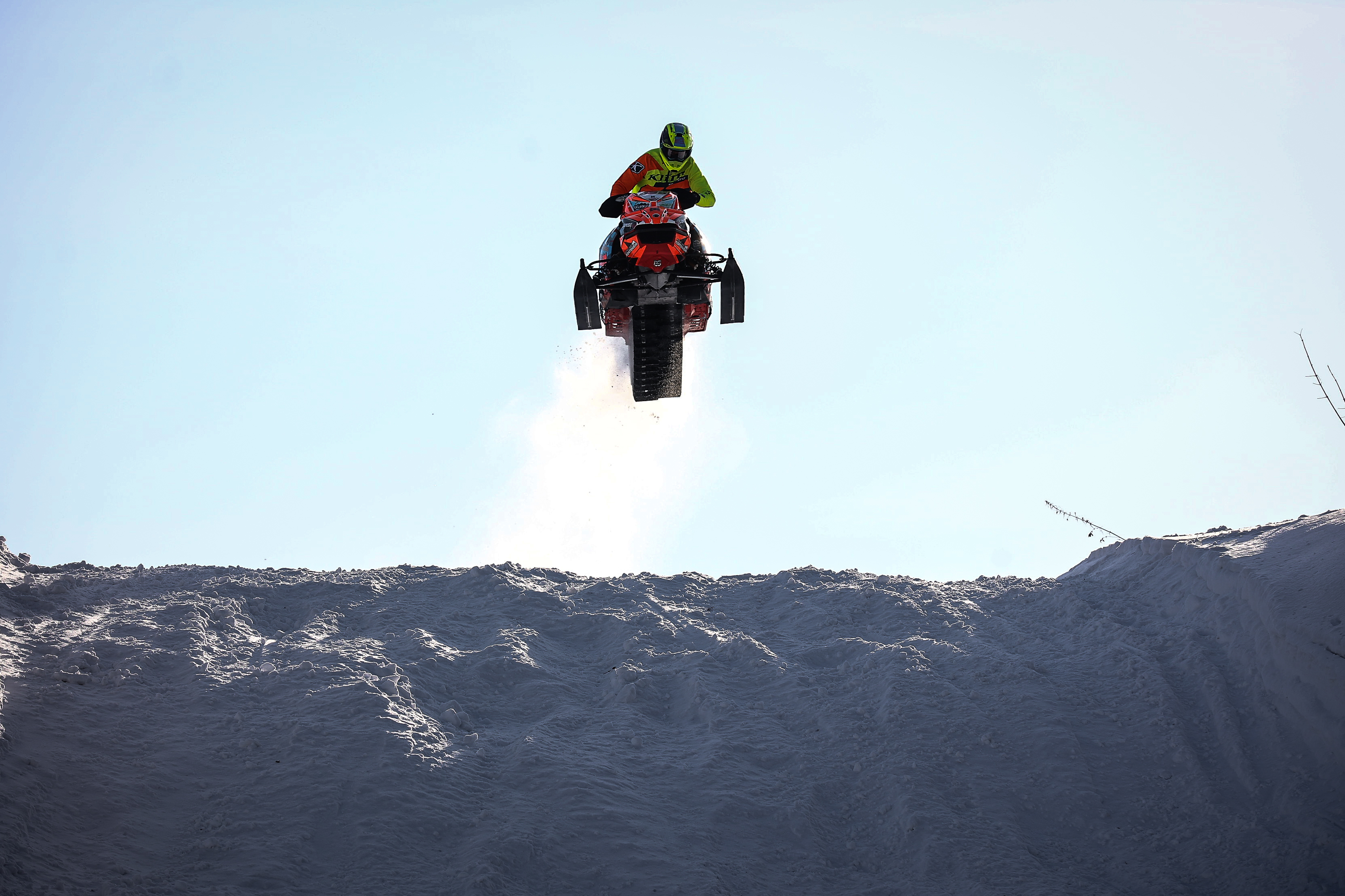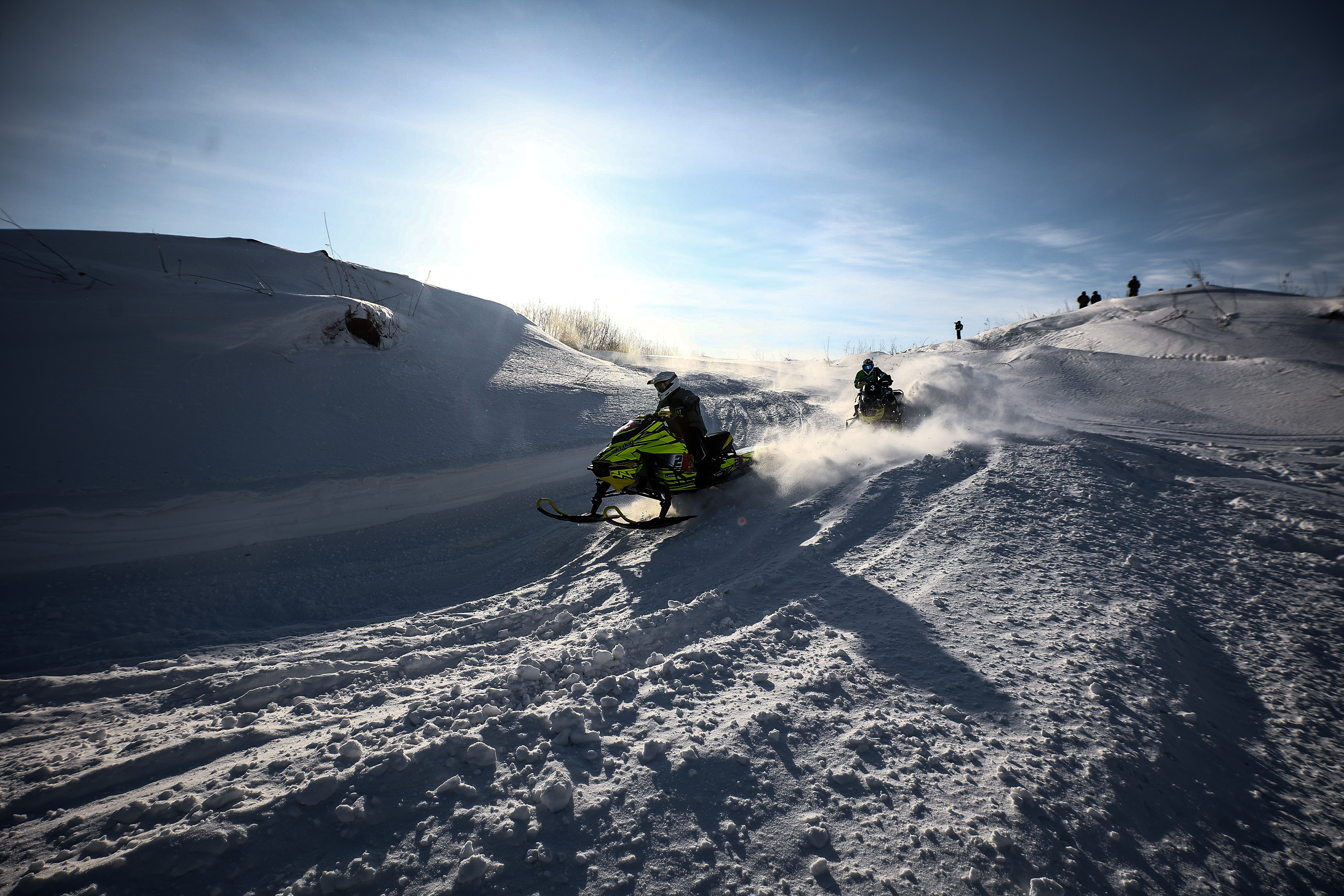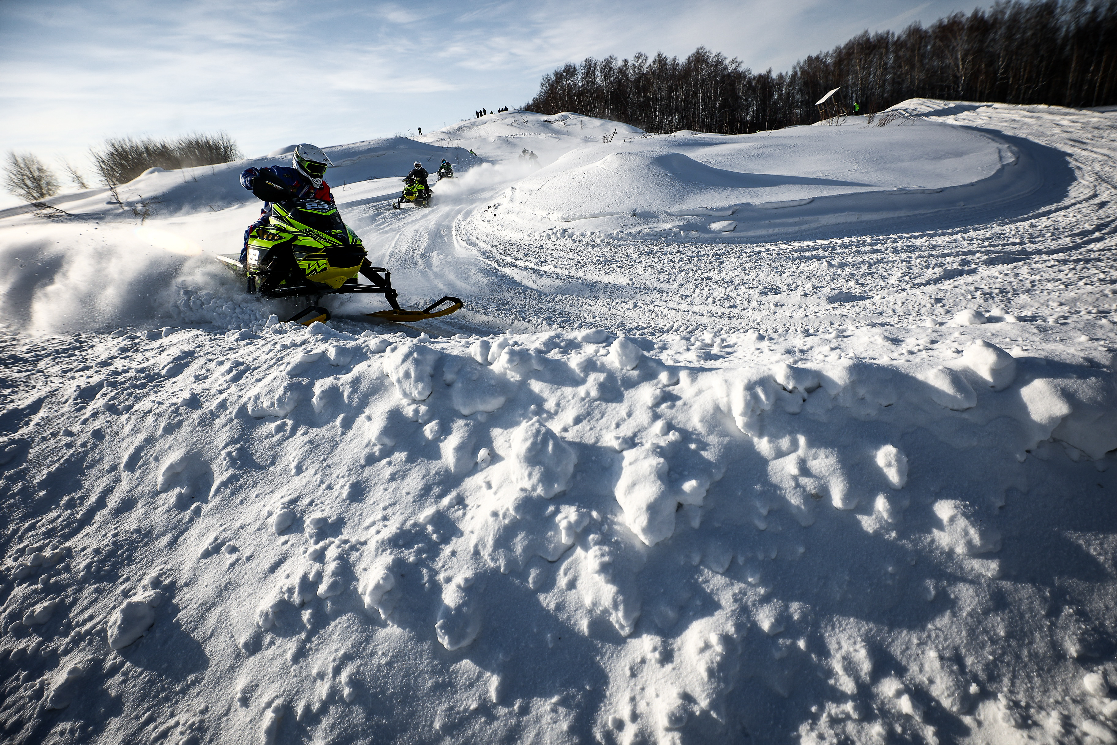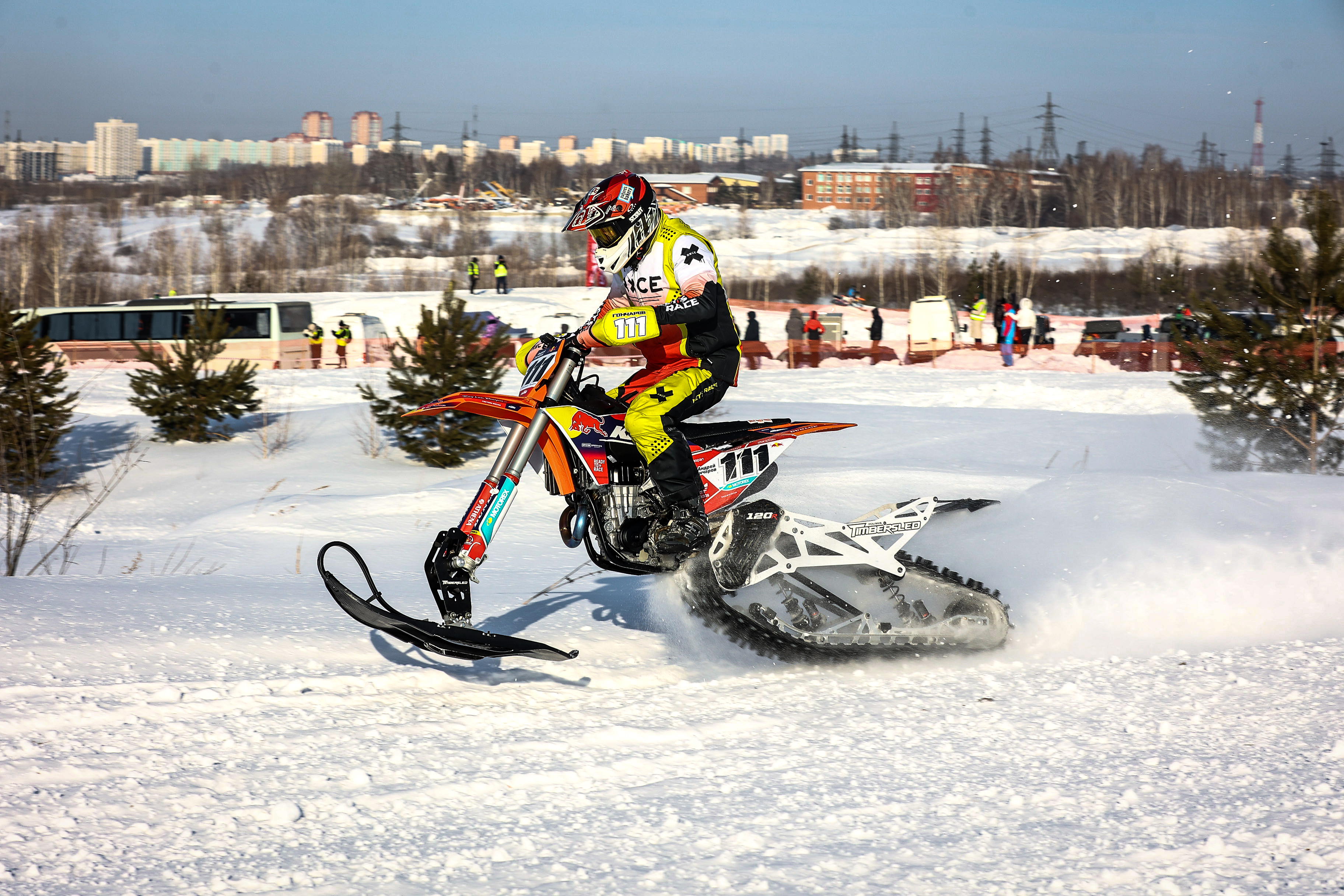 Сегодня, 31 января, в Новосибирске прошли всероссийские соревнования по кроссу на снегоходах и сноубайках — мотоциклах, у которых вместо заднего колёса установлена гусеничная подвеска, а вместо переднего — лыжа. Эффектные гонки на Ключ-Камышенском плато запечатлел фотограф «Новосибирских новостей» Ростислав Нетисов.