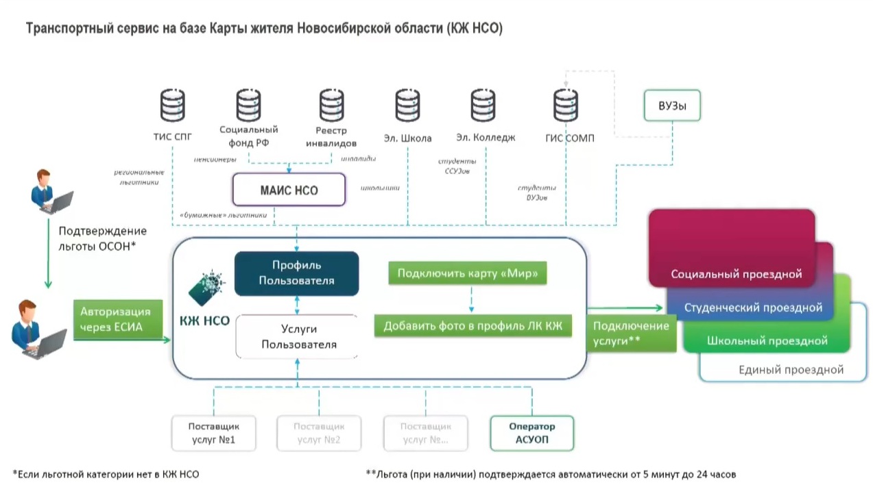 Министр цифрового развития и связи региона Сергей Цукарь подчеркнул, что свой проездной можно привязать к «Карте жителя Новосибирской области». Это карта любого банка платёжной системы «Мир», связанная с онлайн-профилем, который подтверждает принадлежность пассажира к той или иной социальной категории (студент, пенсионер, член многодетной семьи). Сервисом уже пользуются более 13 000 человек. Присоединиться к их числу можно с помощью портала karta.nso.ru. Потребуется авторизоваться через «Госуслуги» и загрузить фотографию.