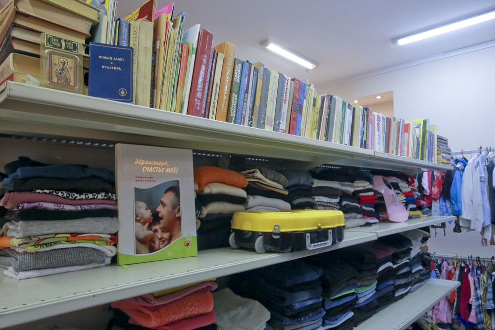 Ещё есть нюанс: когда женщина приходит первый раз — она теряется. Начинает спрашивать, что можно взять. Объясняем, что можно взять всё, что есть на полках. И уже после 2-3 раза женщина становится более свободным человеком. Во-первых, меняется внутренне. Пришла никому не нужная, печальная. А спустя 4-6 месяцев посмотришь — расцвела: в платье, на каблучках, ухоженная.