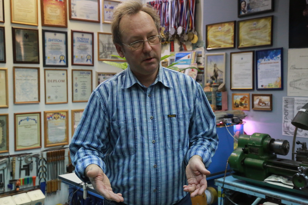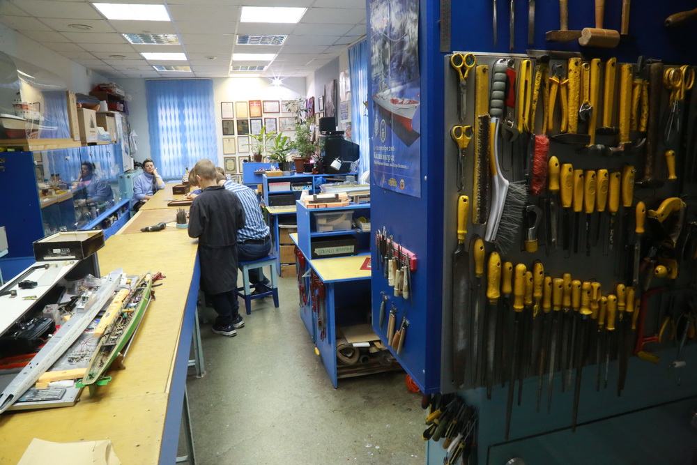 Руководитель студии Дмитрий Гуревич пришёл сюда делать кораблики маленьким мальчишкой, а когда вырос — заменил своего тренера на рабочем месте. В шкафу до сих пор хранит своё самое первое судно на резиночках.