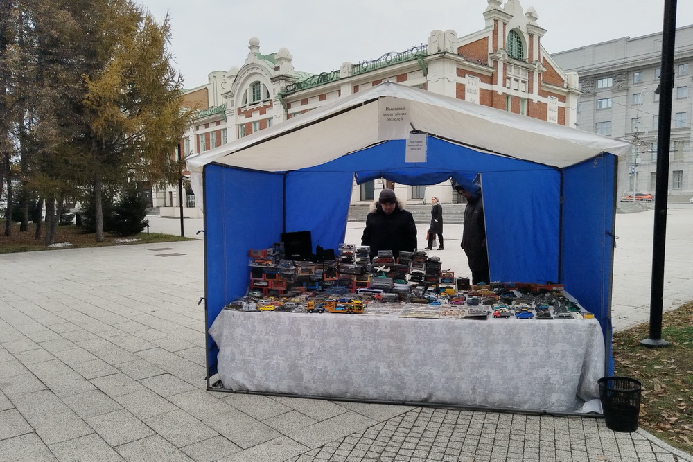 Владельцы масштабных моделей решили показать новосибирцам свои экспонаты в честь Дня автомобилиста. Палатку с ними установили у фонтана в Первомайском сквере.