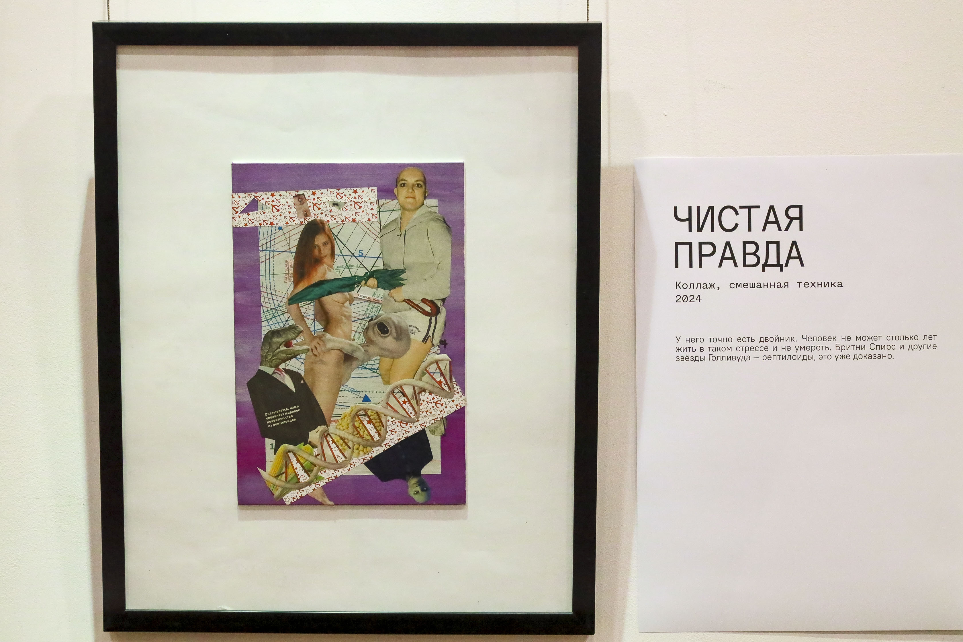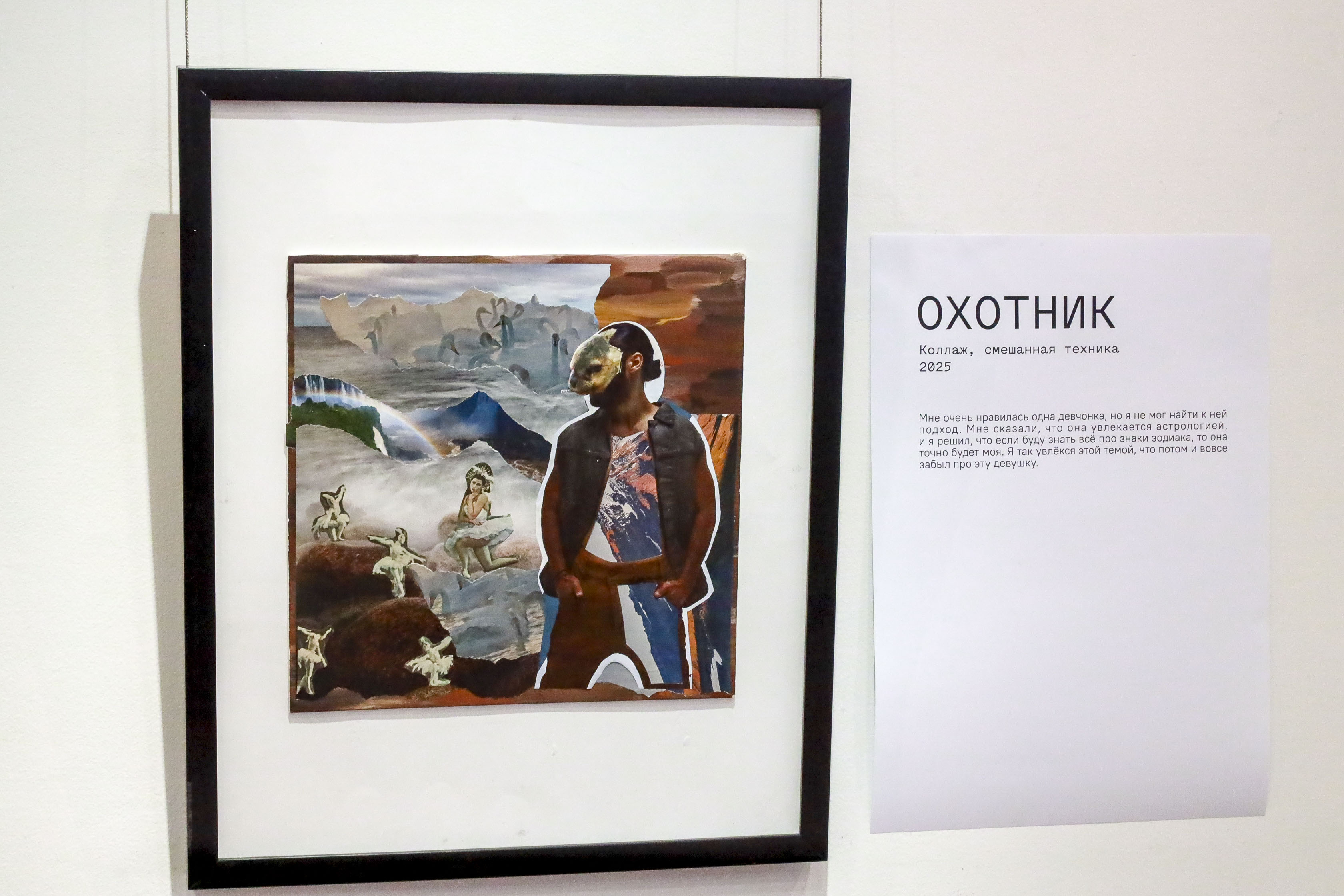 Как рассказала куратор проекта Мария Гладких, экспозицию назвали в честь первой работы. В коллажной технике на ней помещены фотографии из детского сада, где ребёнок переодет в костюм какого-нибудь героя.