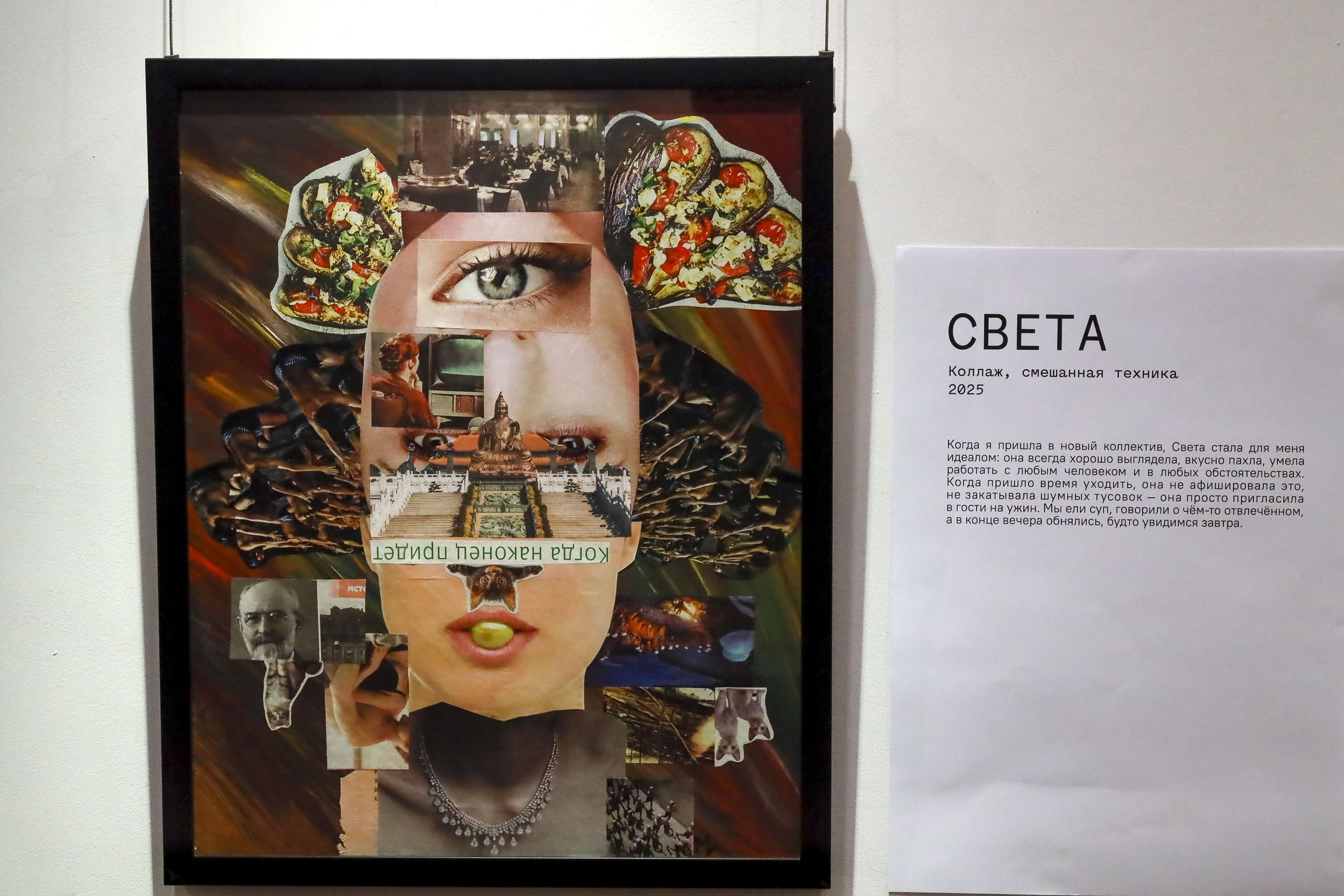 Новосибирцы увидят 33 необычных творческих произведения. Для их создания были использованы иллюстрации изданий постсоветского периода — из журнала «Лиза», газет бесплатных объявлений, косметических каталогов.