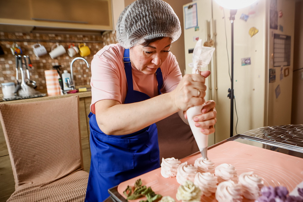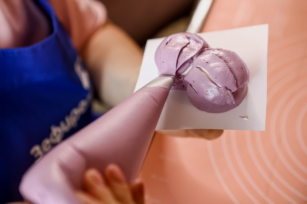 «Онлайн-обучение — это сложно. Когда педагог с тобой рядом, он может поправить тебе руку, что-то подсказать. А так всё сама. Первые изделия я несла на работу. За два месяца, пока отрабатывала технику, накормила зефиром весь завод, на котором тогда работала», — вспоминает кондитер.