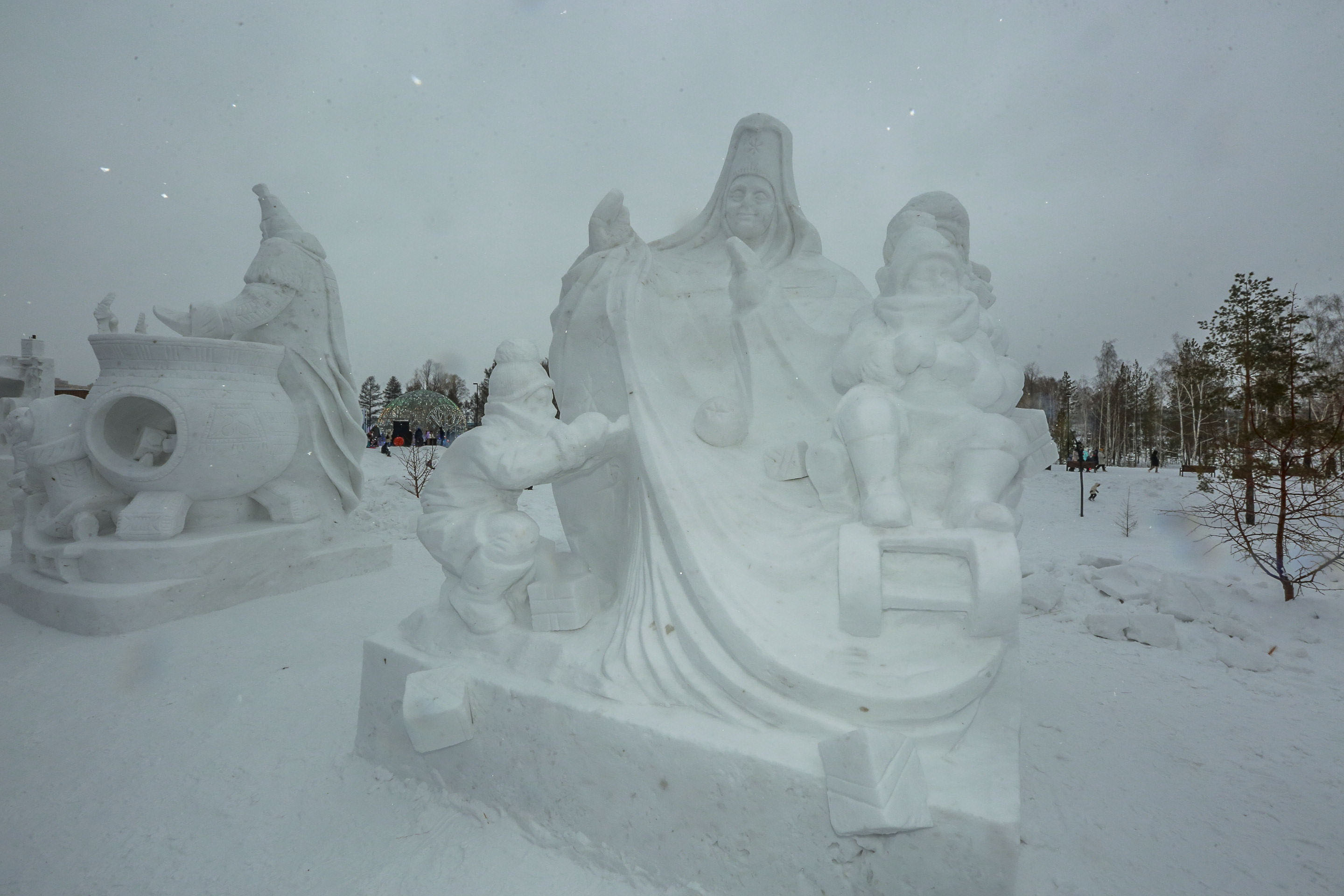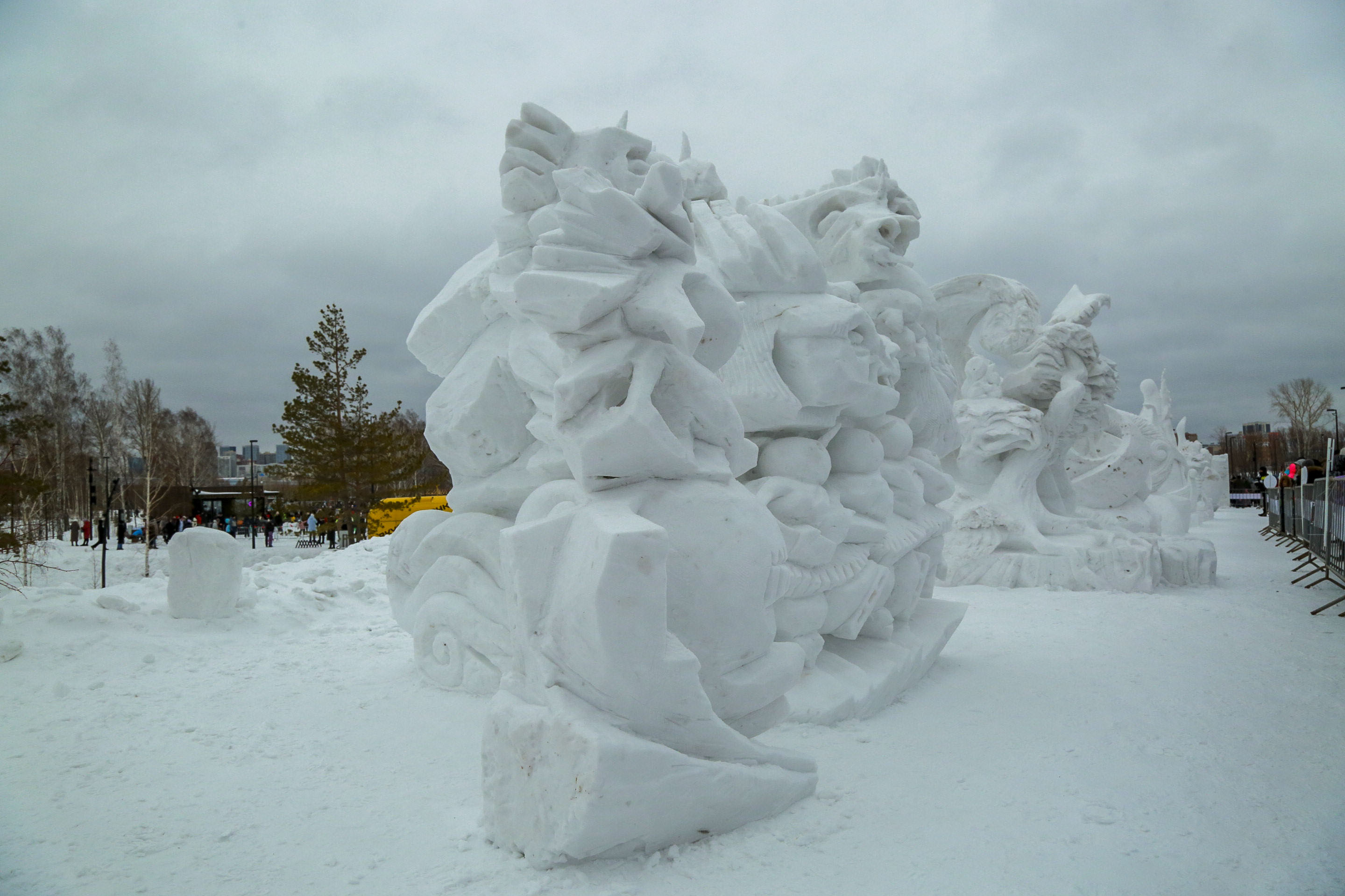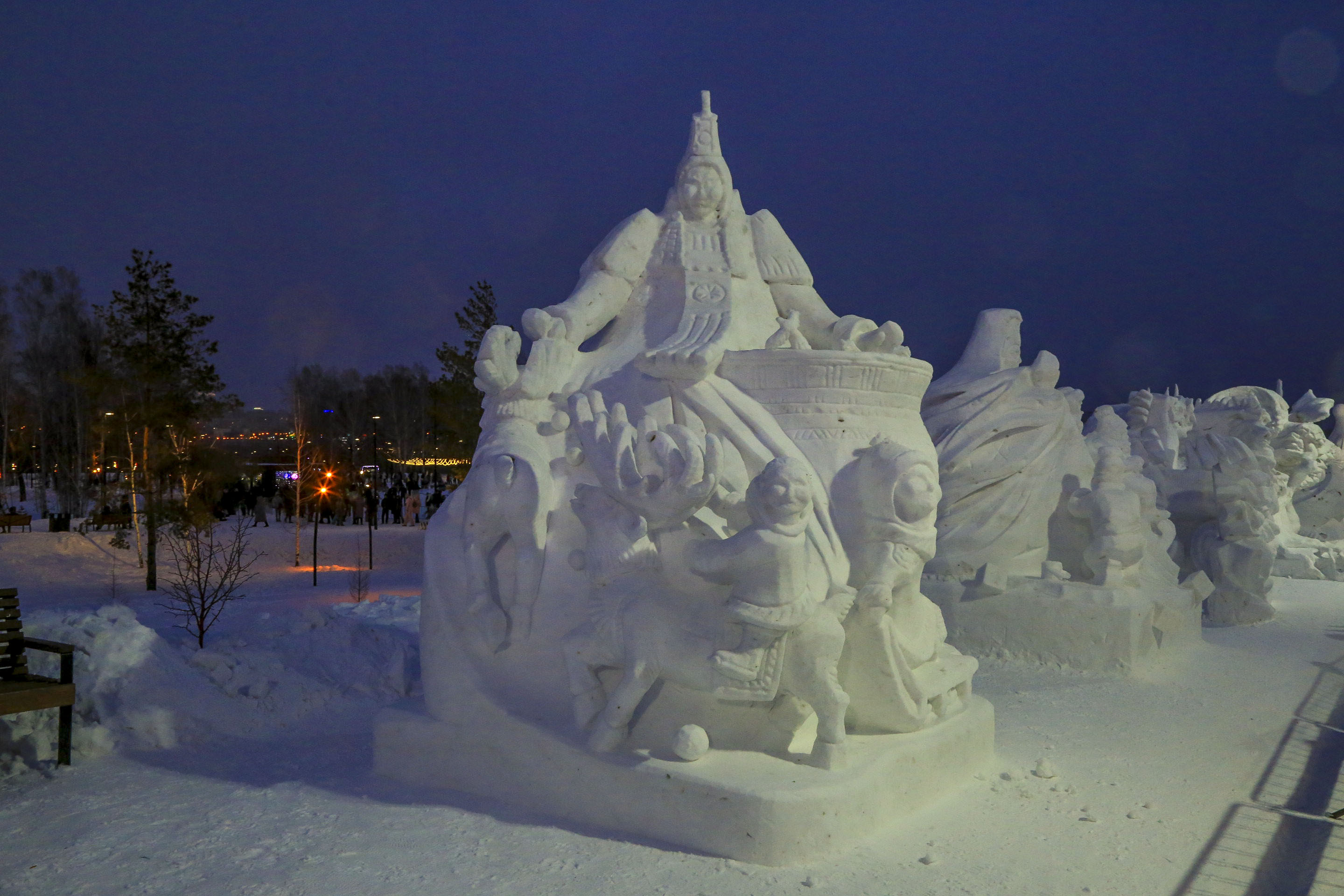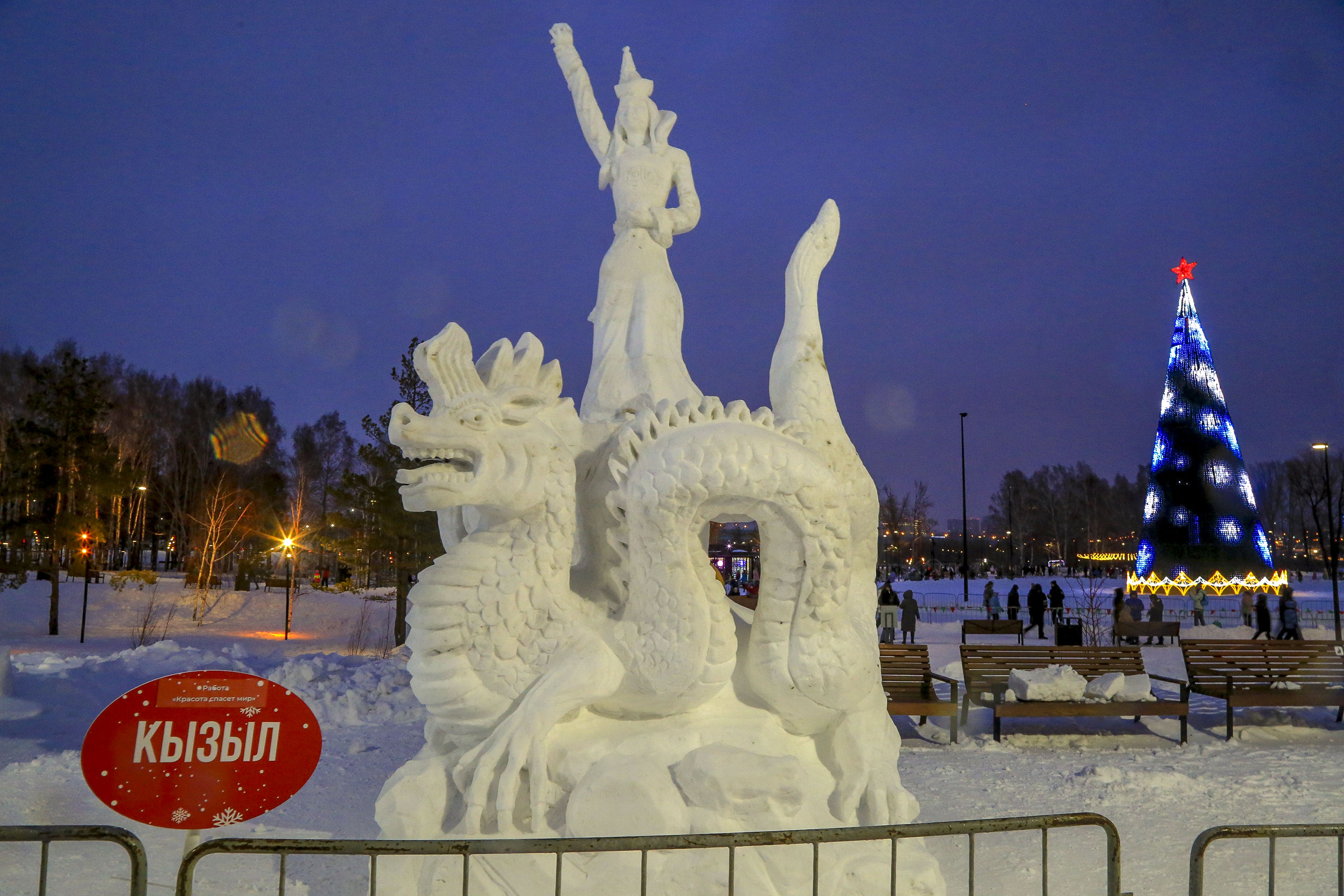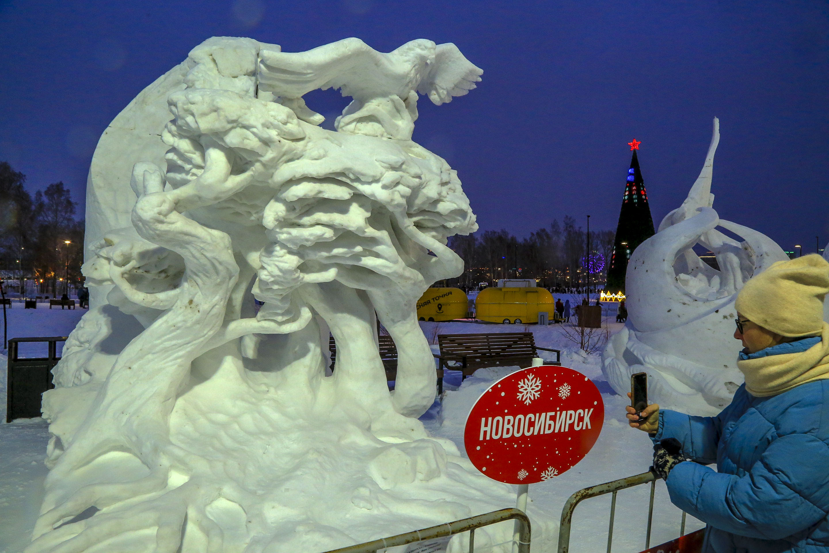 Неваляшка, снеговик, трёхглавый дракон: парк «Арена» на целый месяц превратился в сказку. Мастера из разных уголков России с помощью инструментов и фантазии за считанные дни создали скульптуры из снега к традиционному конкурсу на приз мэра Новосибирска.